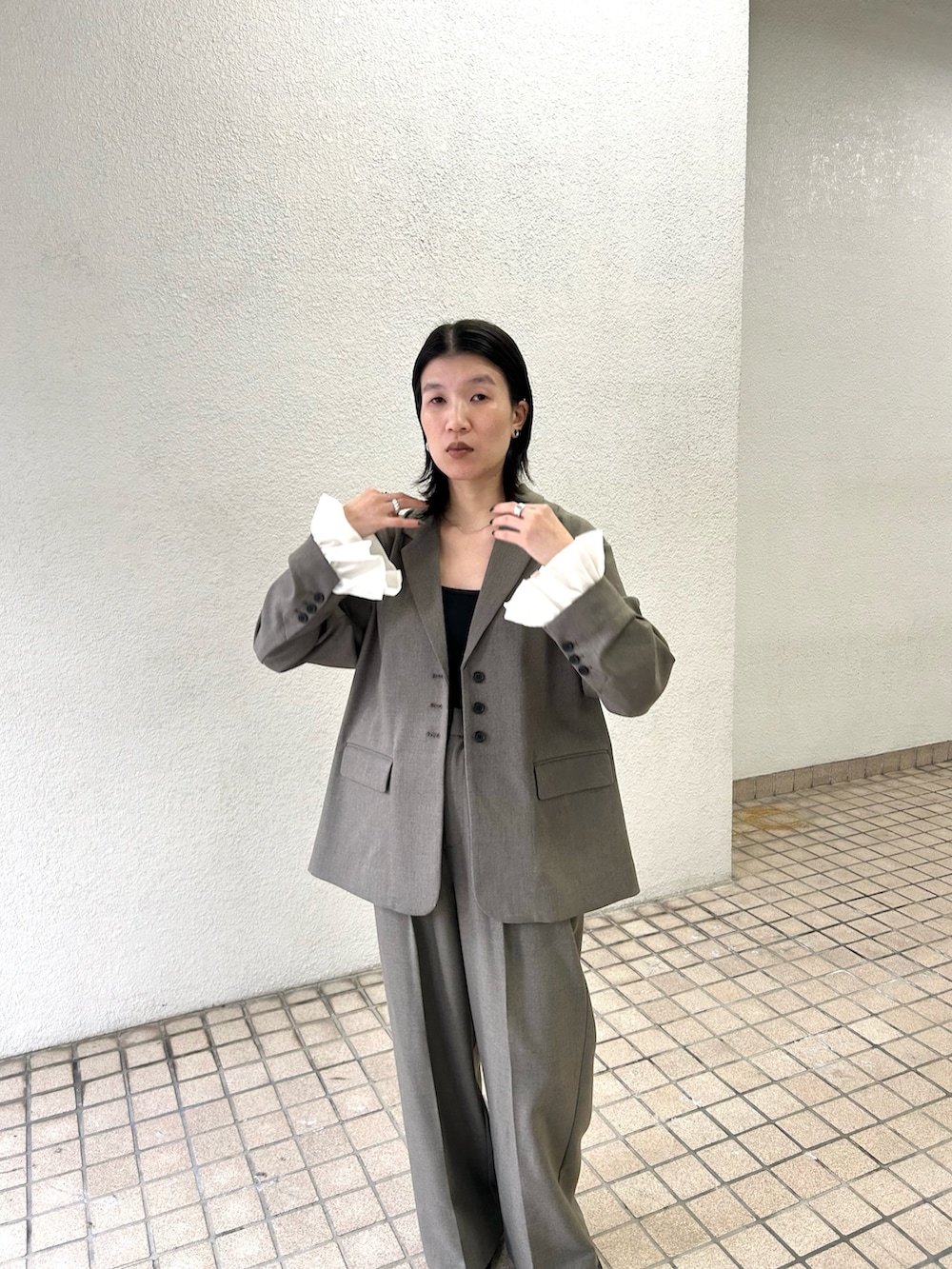 パンツもストレートなシルエットがコーデに馴染みやすく、セットアップはもちろん単品使いもオススメです!