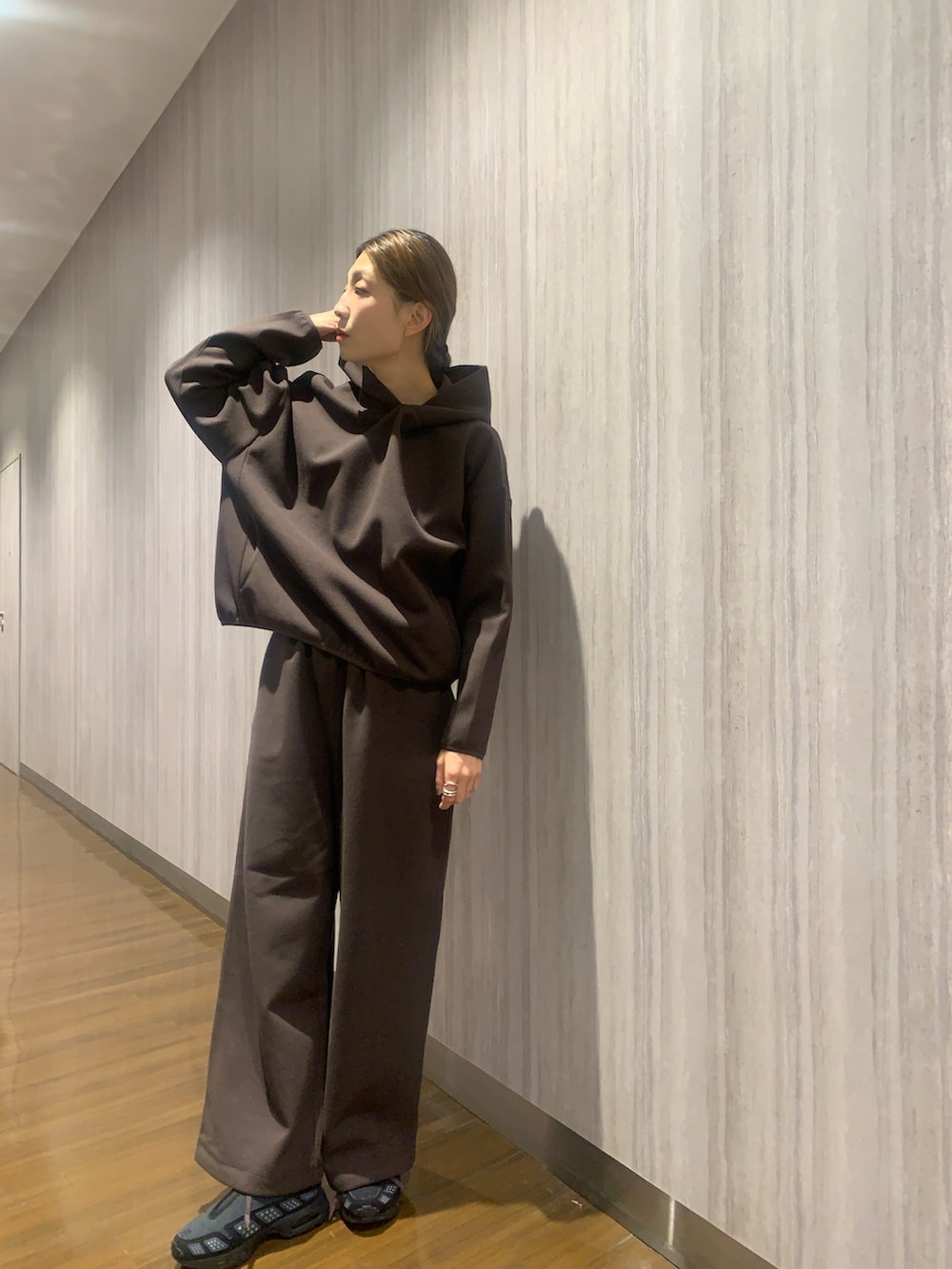 昨年も好評いただいた、ウォームドジャージーシリーズをセットアップで着てみました。