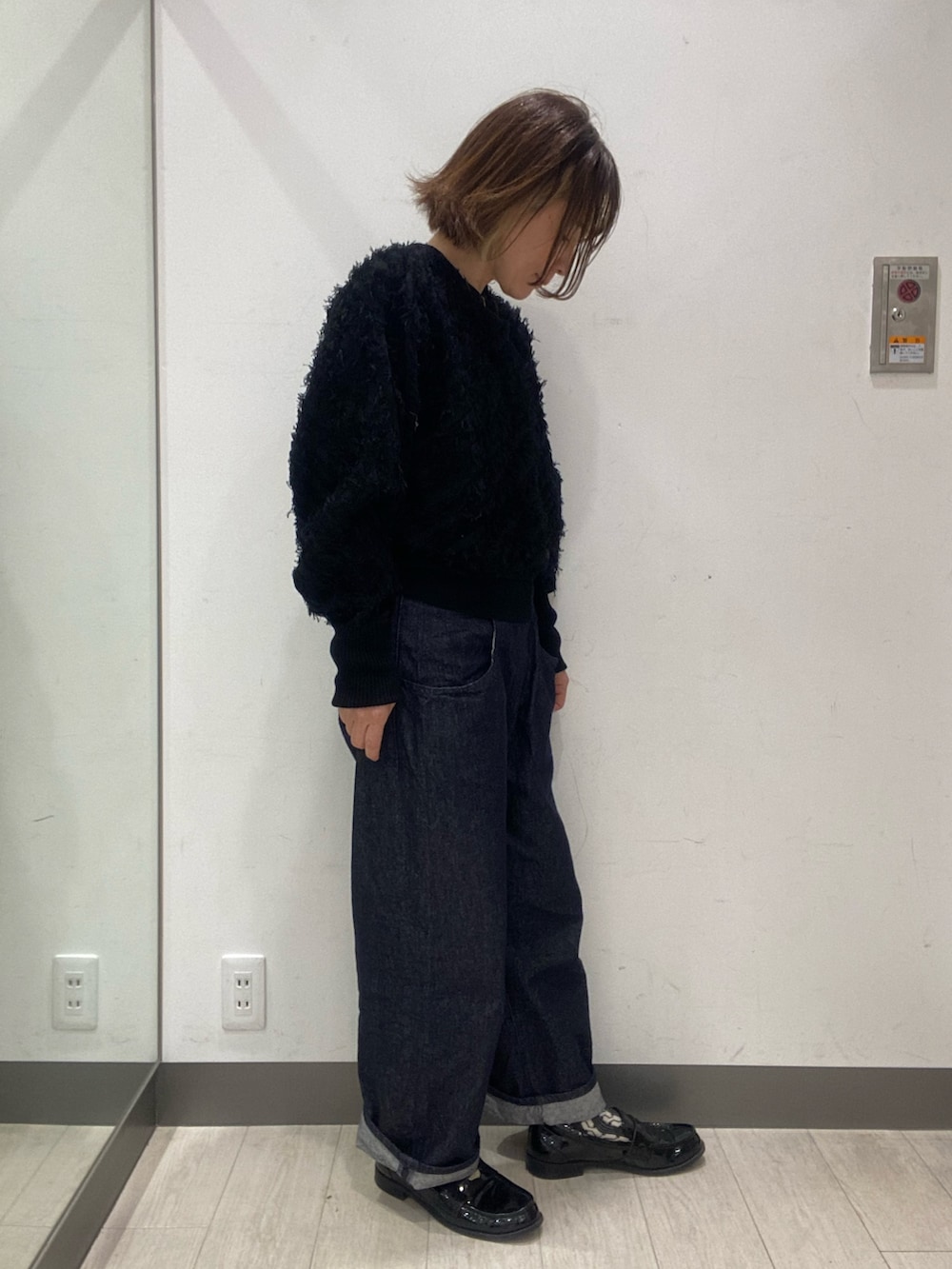 カーディガンは、フリンジが華やかでセミフォーマルでも着られそうです。