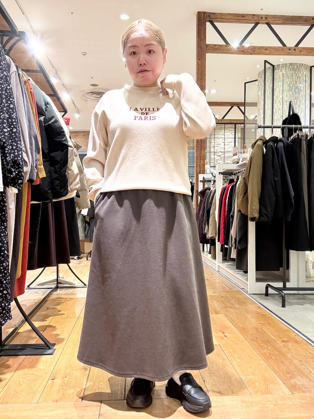 スカートはあったか素材のギャザースカート👏