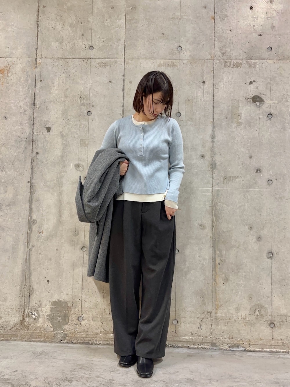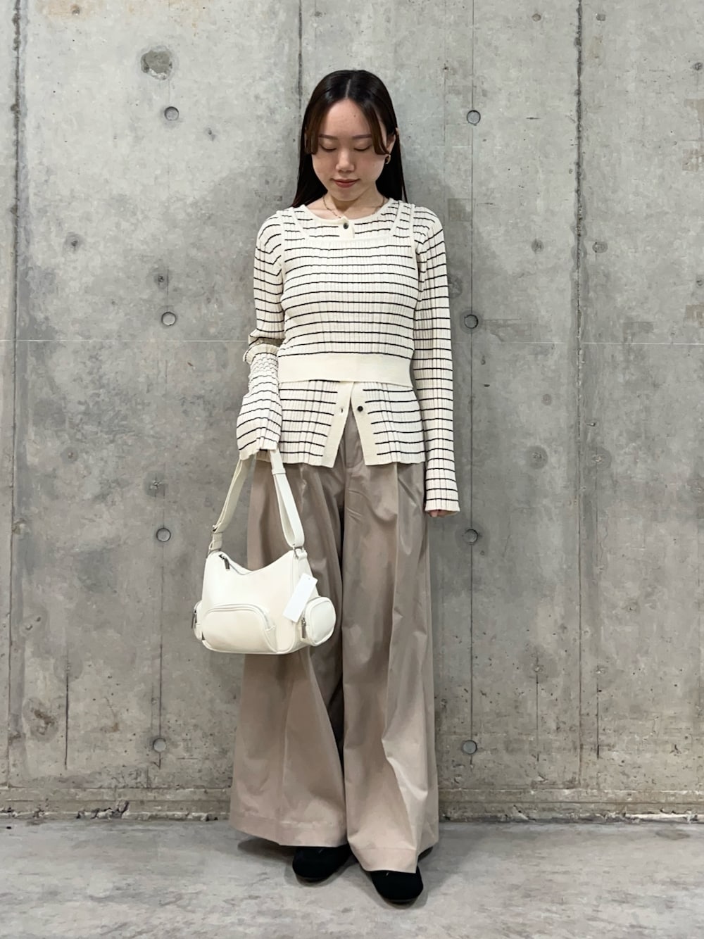水色が映えるレイヤードニットは、薄手でも身体にフィットするため、とてもあたたかいです🙌🏻