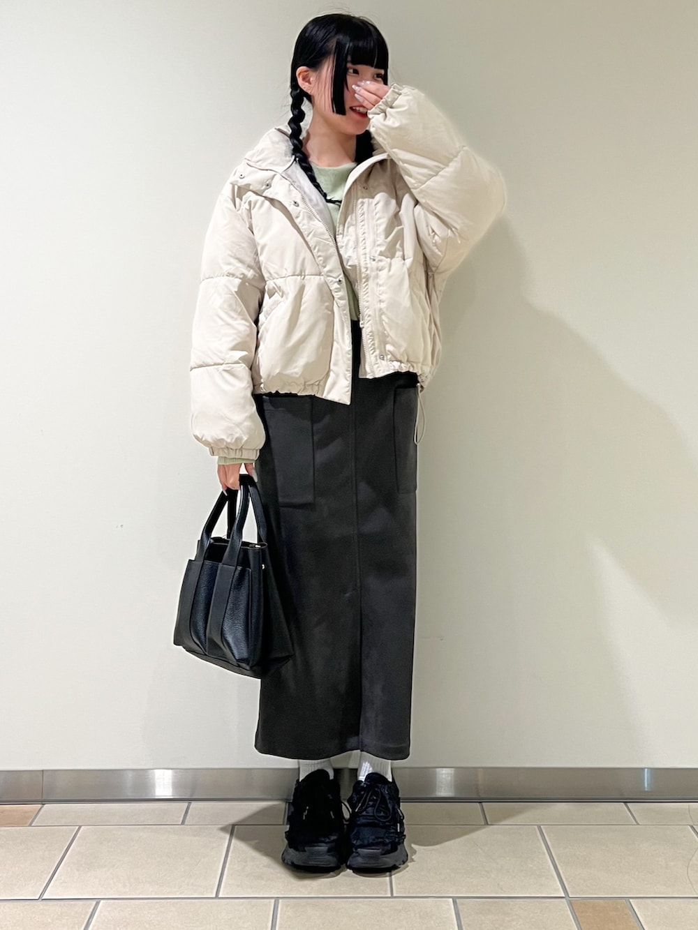スカートはスッキリめのシルエットで、ウエストがゴムなのでとっても履きやすいです!!〇