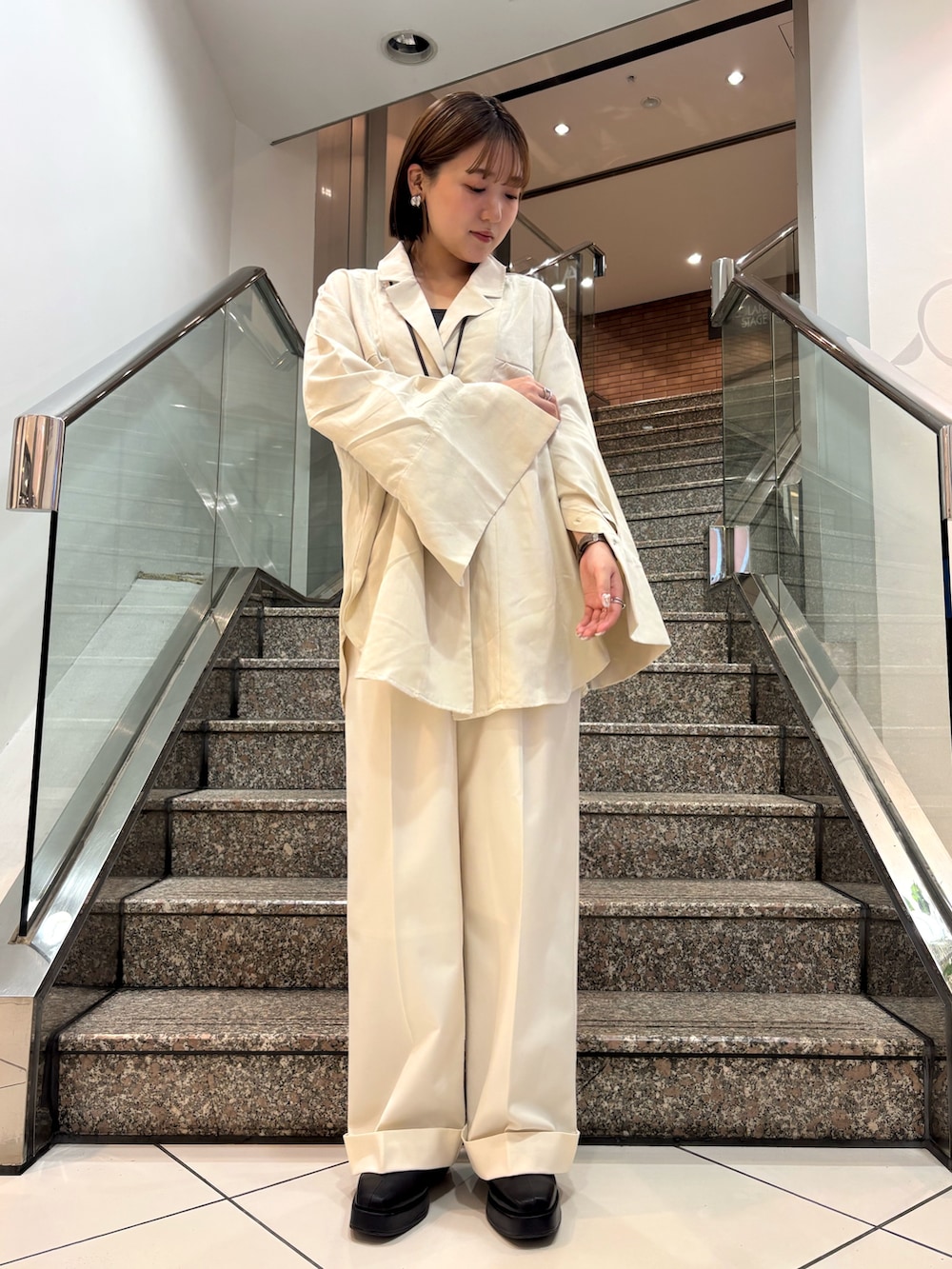 ピーチスキンのお素材で肌触りがとても良く、袖の部分もボタンでアレンジ可能な万能シャツでホワイトワントーンコーデを組みました🤍