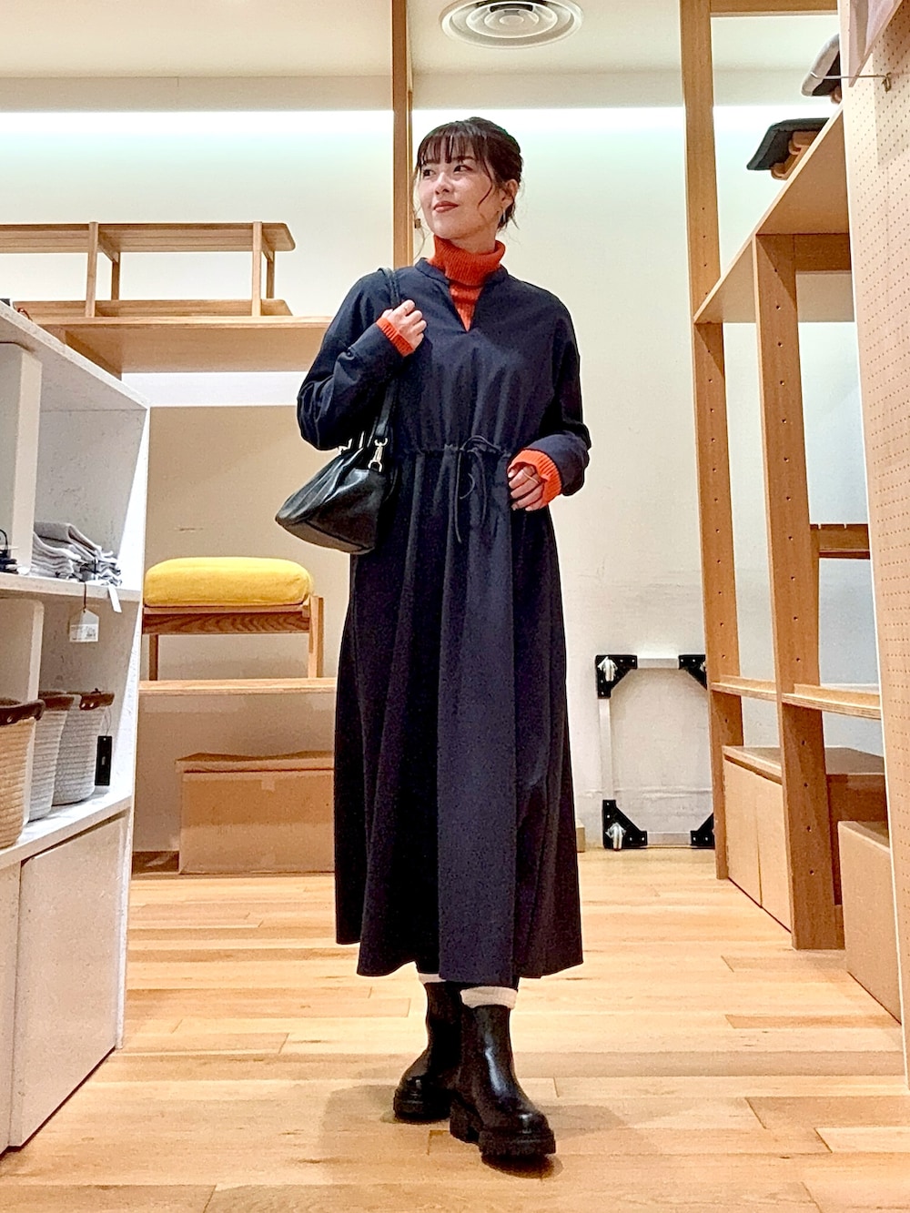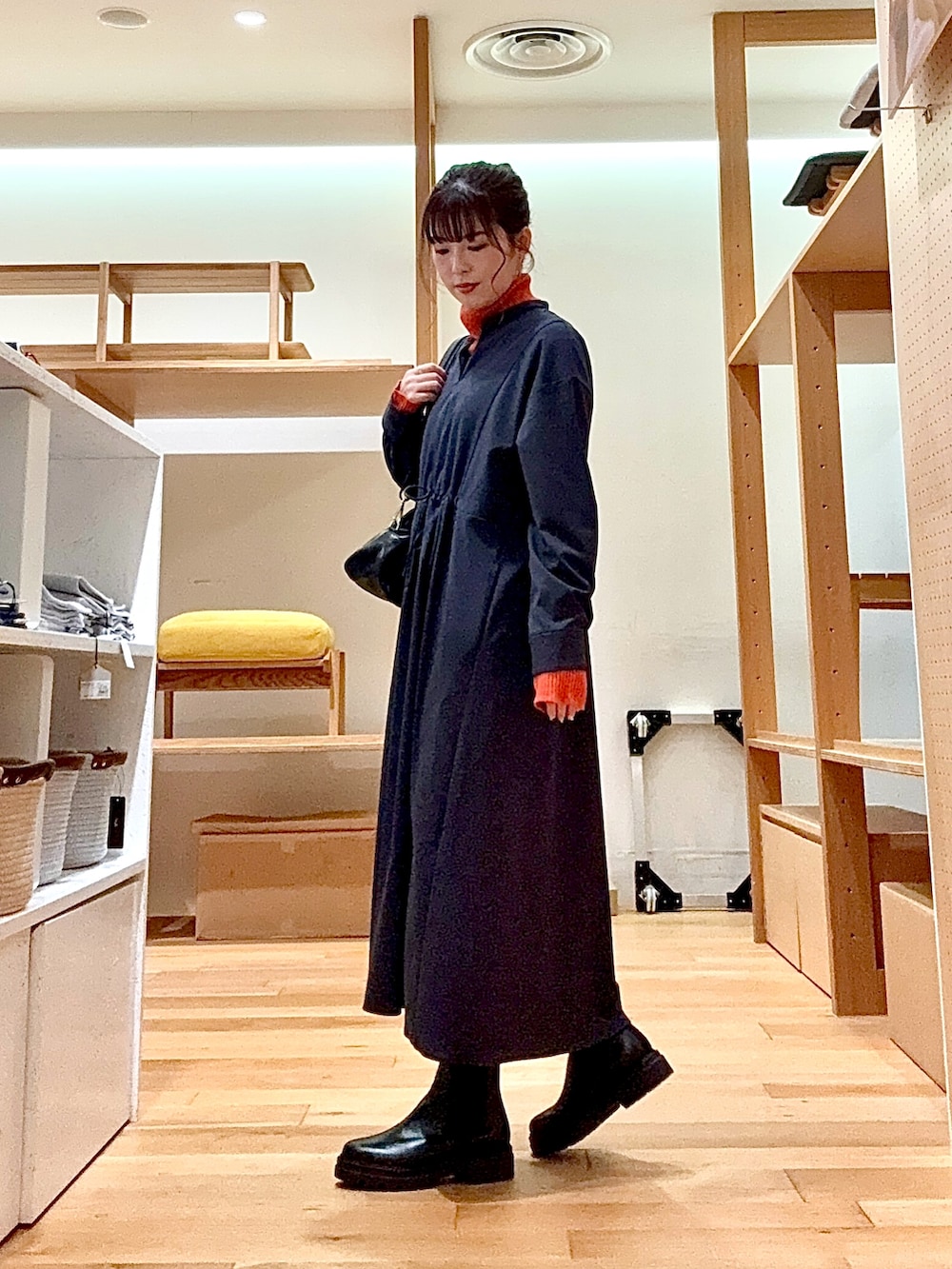 ワンピースはチャコールで、差し色にオレンジを入れてみました🍊