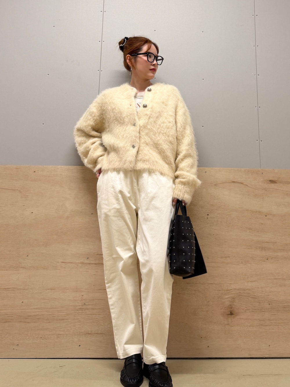 ワントーンコーデに黒の小物を合わせるとメリハリが出て良きです🫶🏻