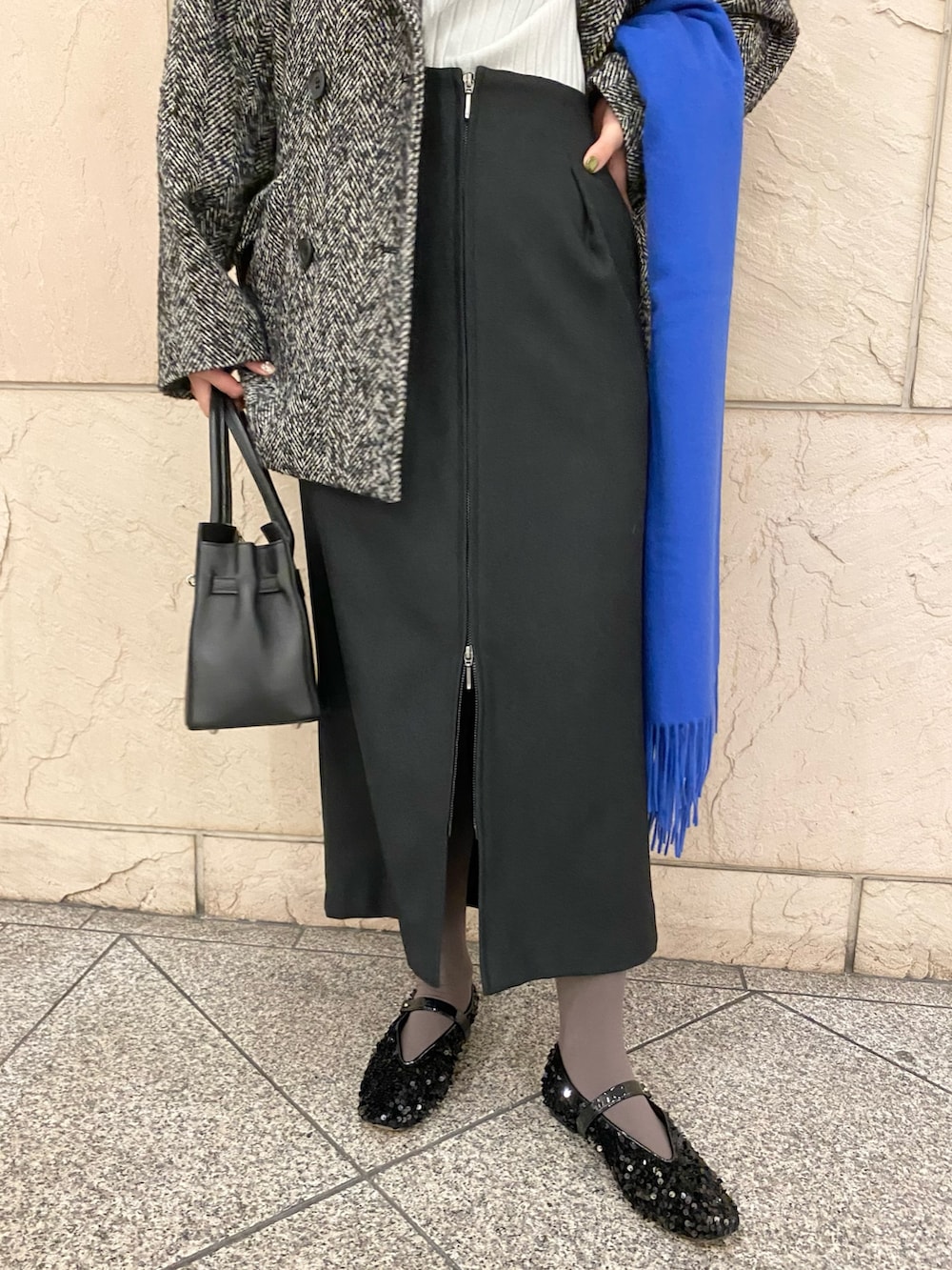 裏地しっかりあるので、年末年始の気温なら薄手のニットで良さそう◎