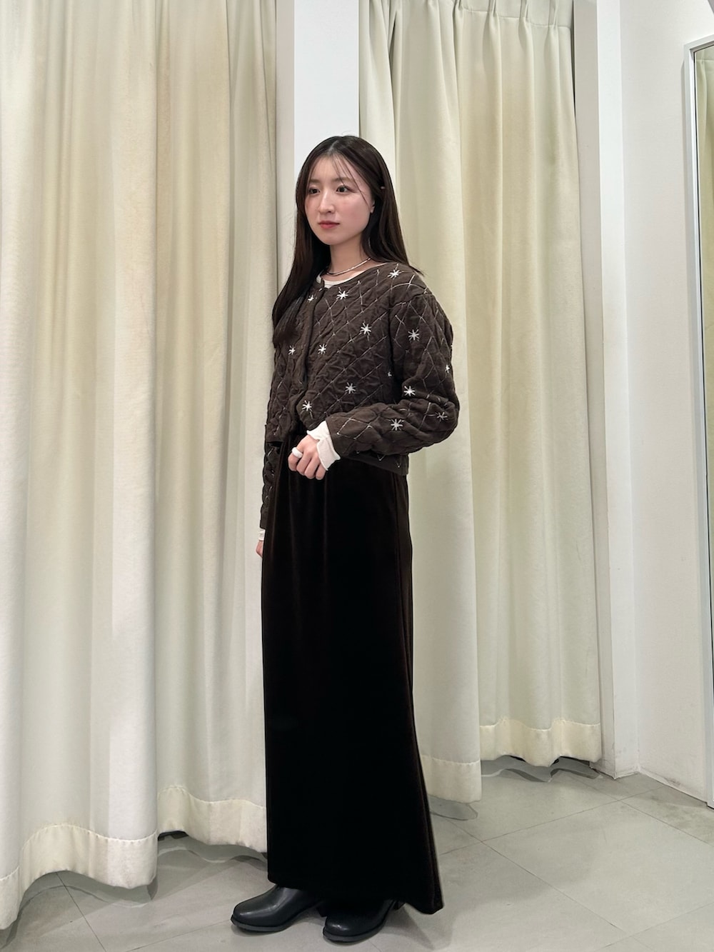 さりげない柄と素材感で、シンプルながら華やかなスタイリングになります🌟