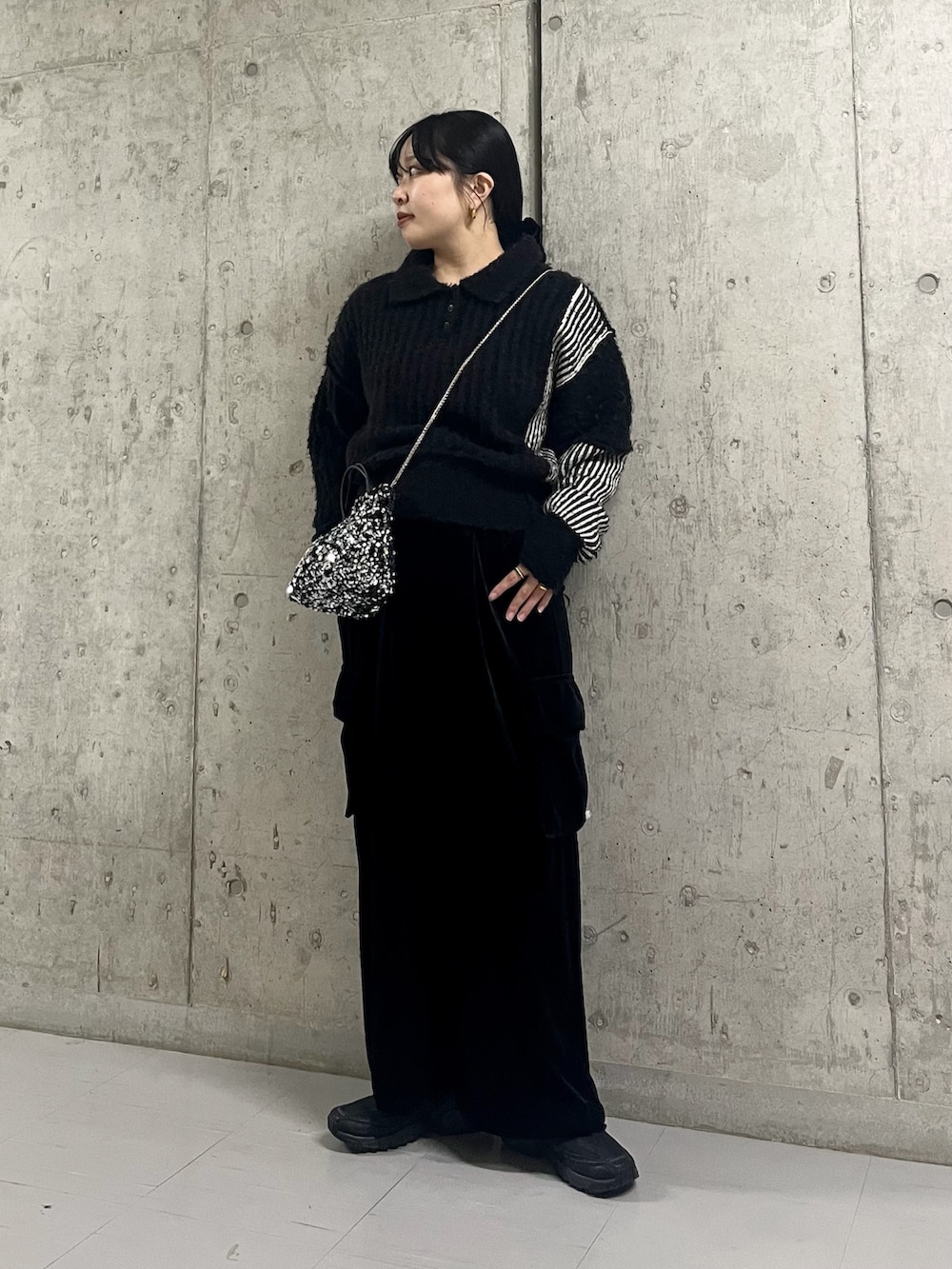ポイントでスパンコールのバッグを持ってきました。