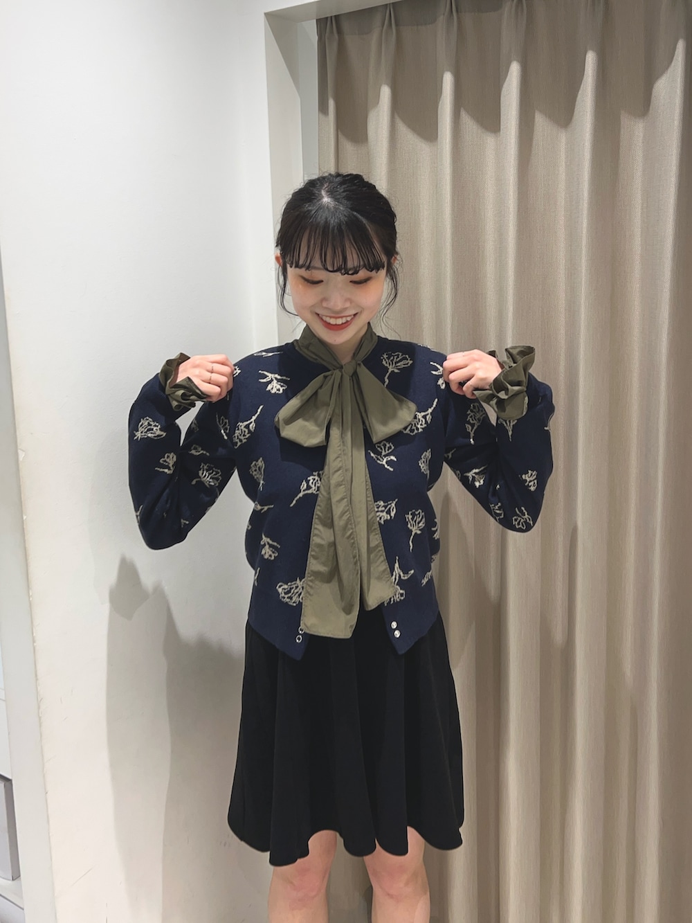『洗濯可』ジャガードフラワーコンパクトニットカーディガン