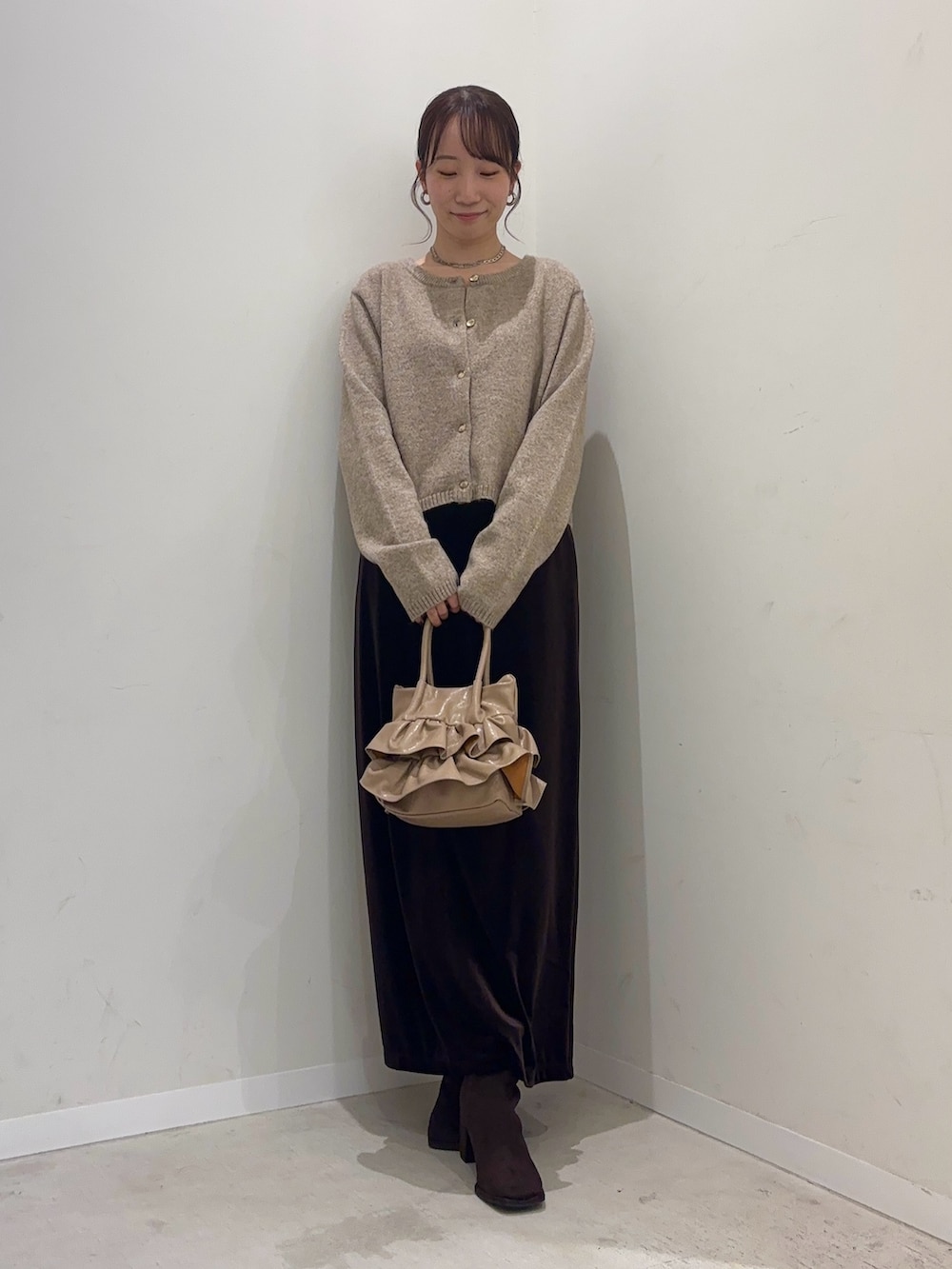 ベロアのスカートは落ち感が綺麗で