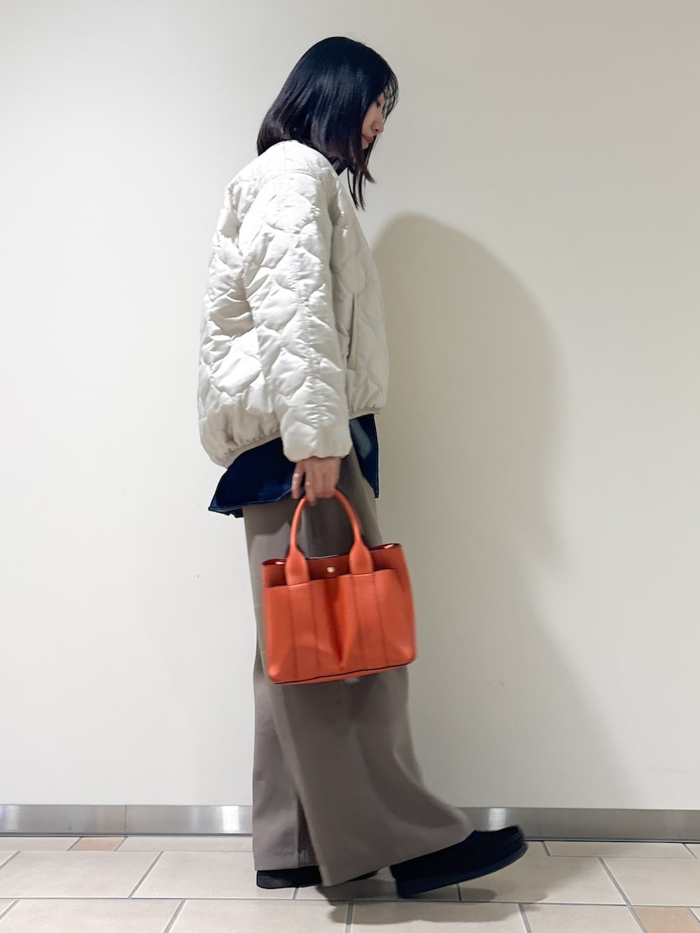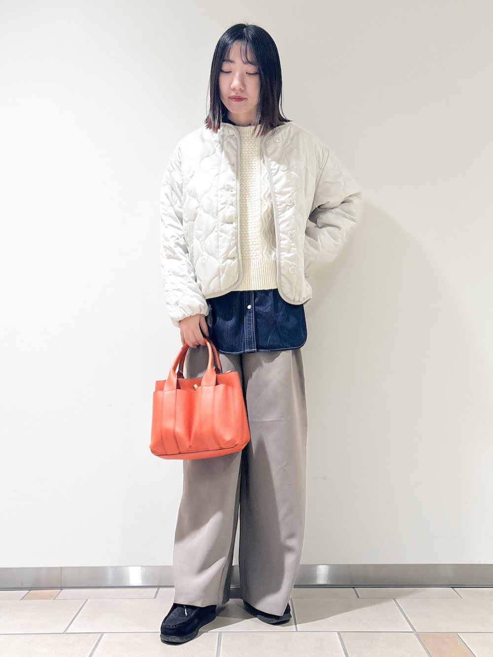 中にはデニムシャツを合わせました。ニットベストなどこっくり冬アイテムと合わせると今時期季節感が出ておすすめ◎春は羽織としても使えるのでずっと活躍してくれます!