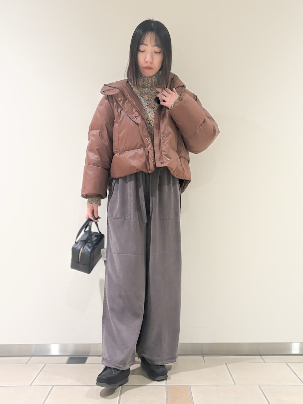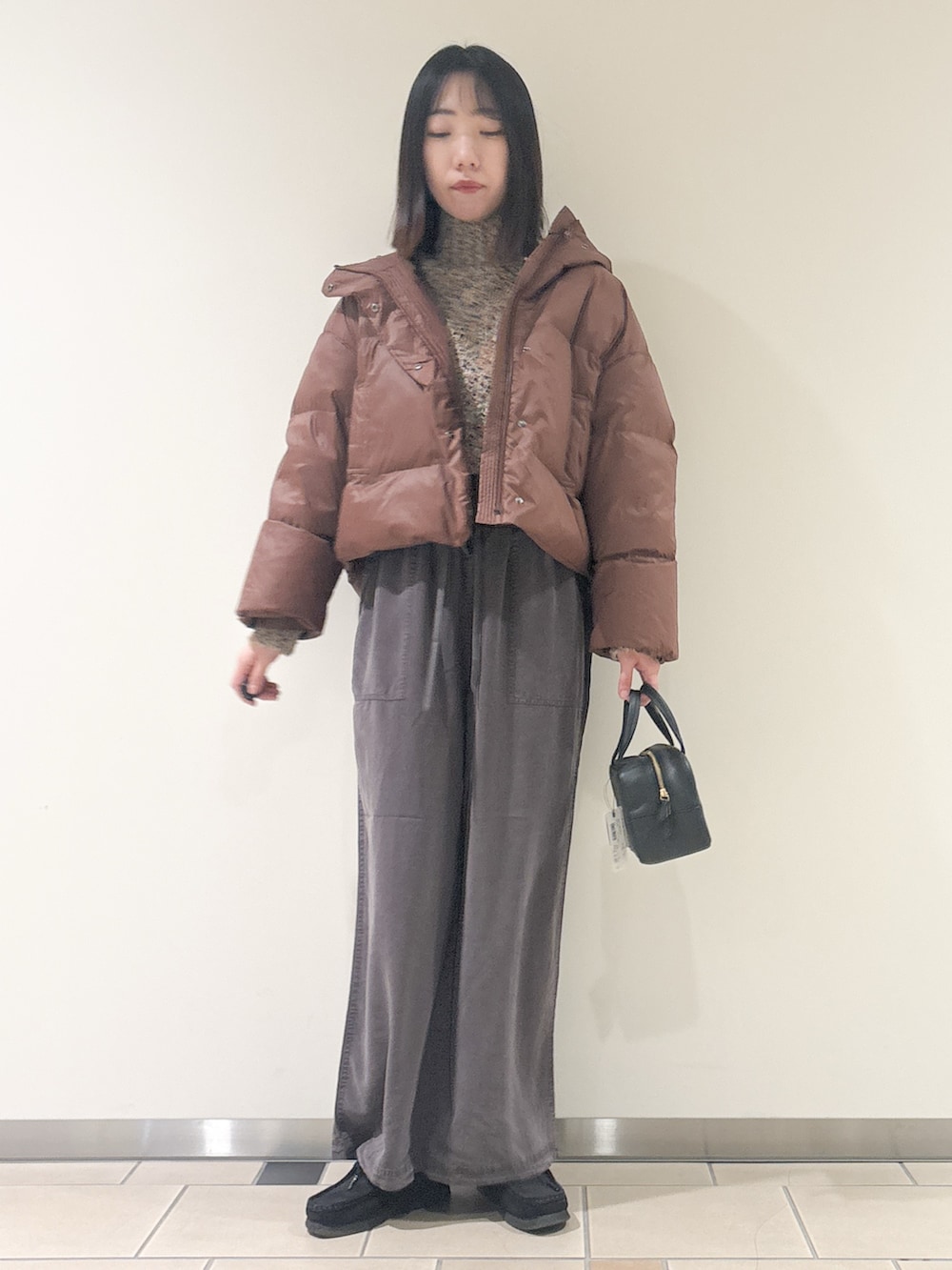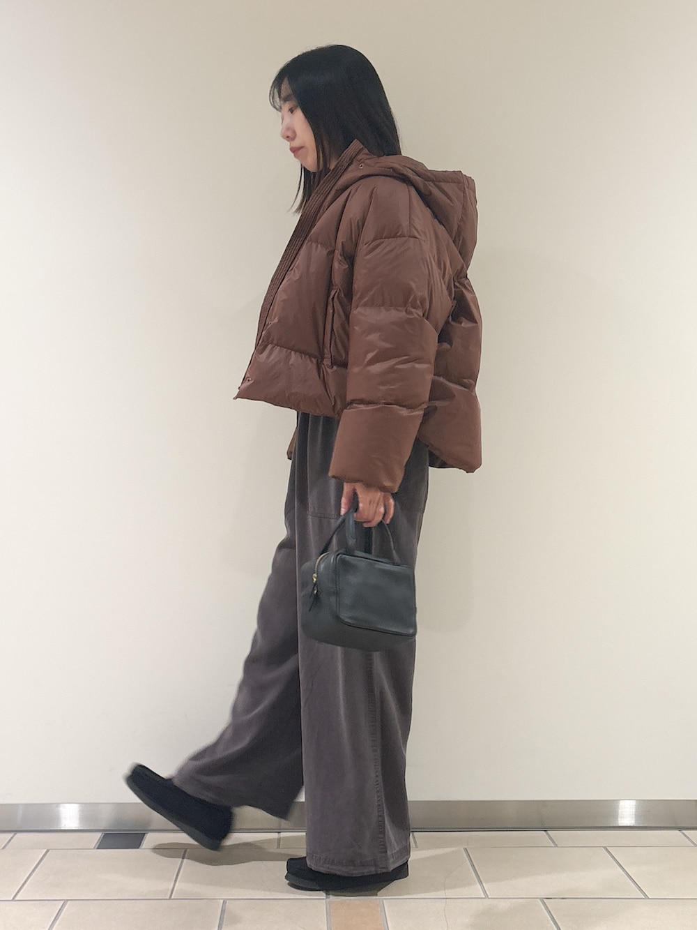 ショート丈ではありつつも後ろは長めになっているので冷えやすい&気になる腰回りをカバーしてくれます!素材はすこし光沢感があり上品見え◎