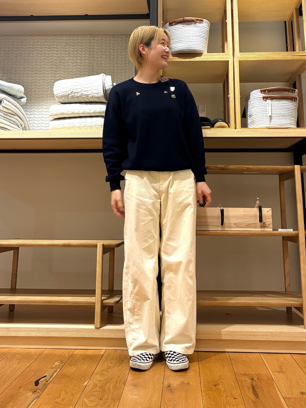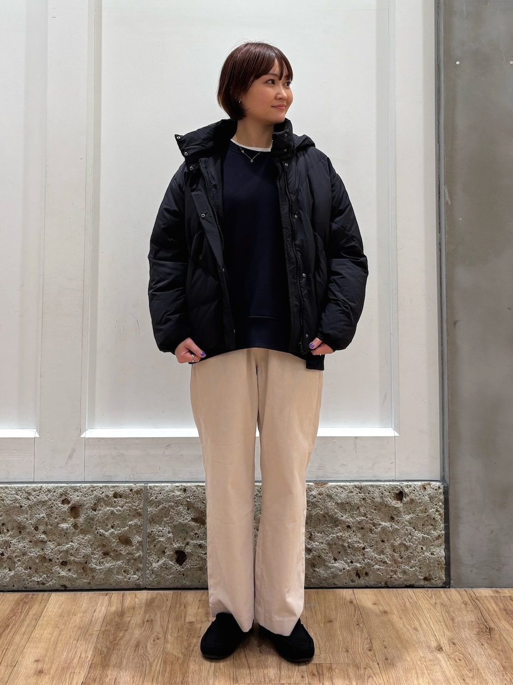 カットメルトンワイドパンツは、見た目だと私の強烈に太い足が出てしまう、、と思っていましたが、履いてみると意外とはけちゃいます!しっかりとワイドパンツでゆったりしていてシルエットが良かったです!