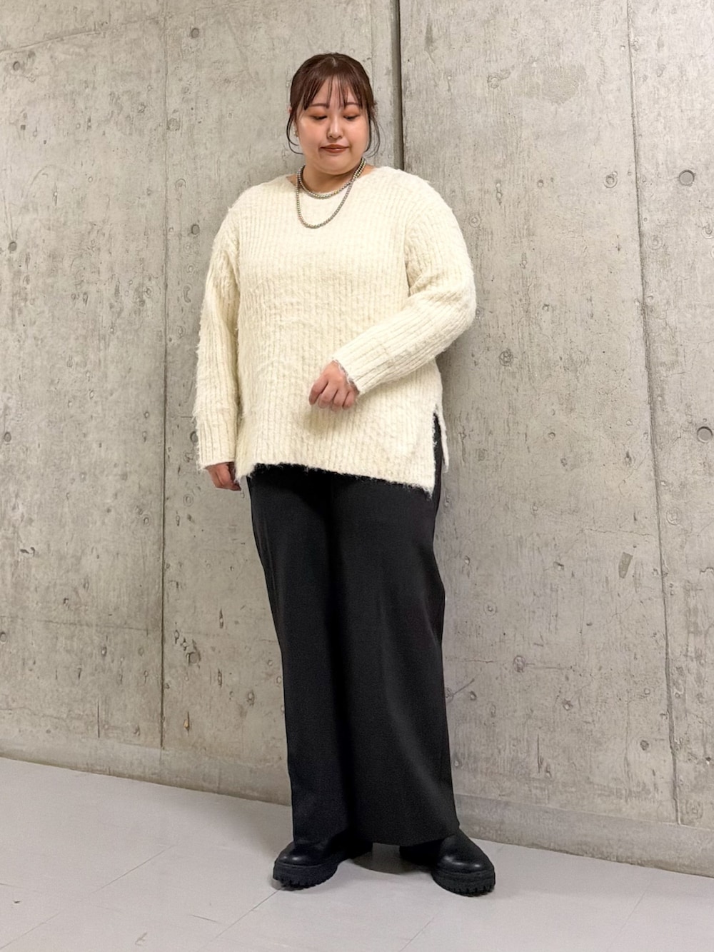 ニットはお尻まで隠れる丈感でゆったり着られて◎