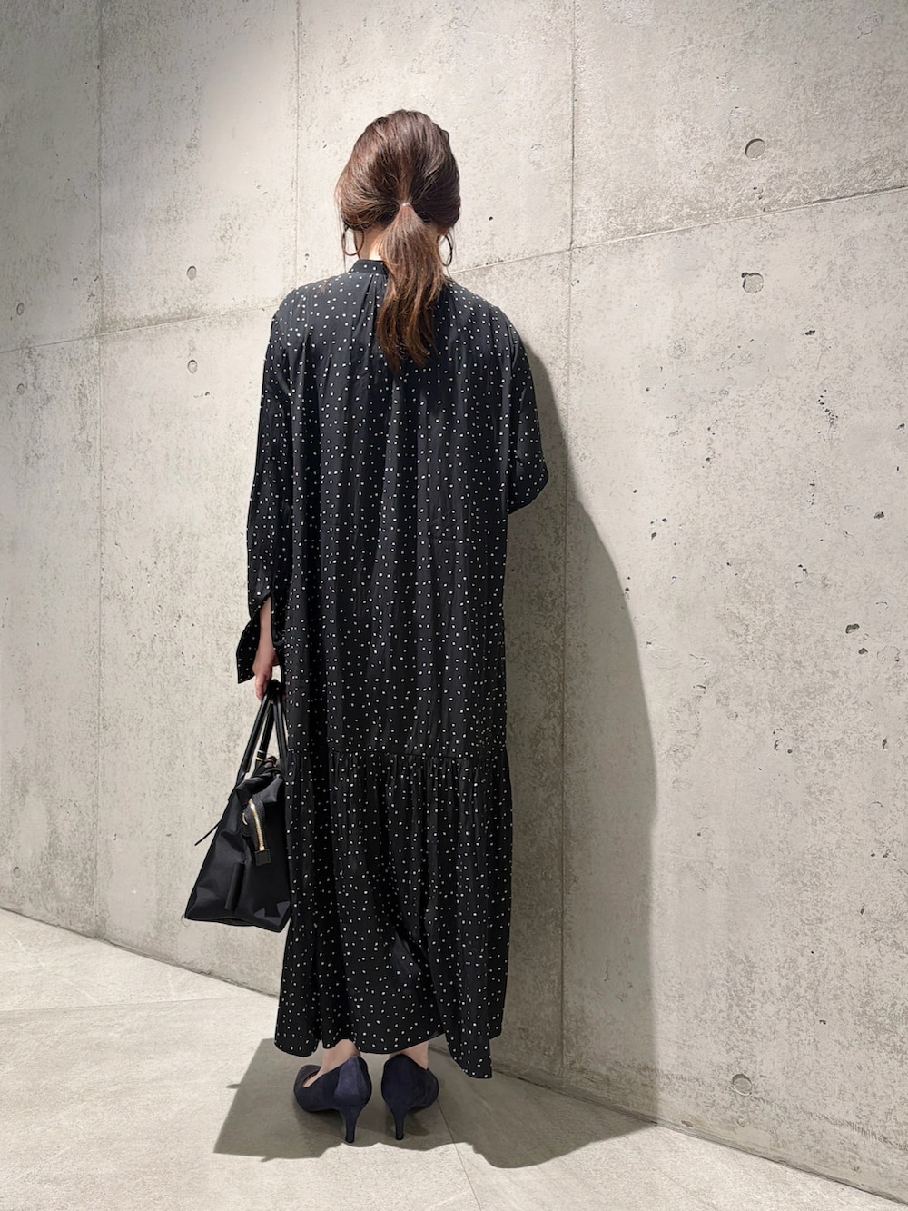 一枚でさらりと着るだけで様になるデザインで、パンプスやブーツを合わせるとシックな着こなしに。