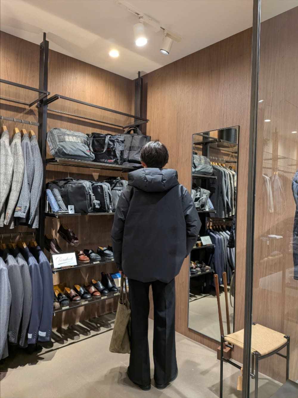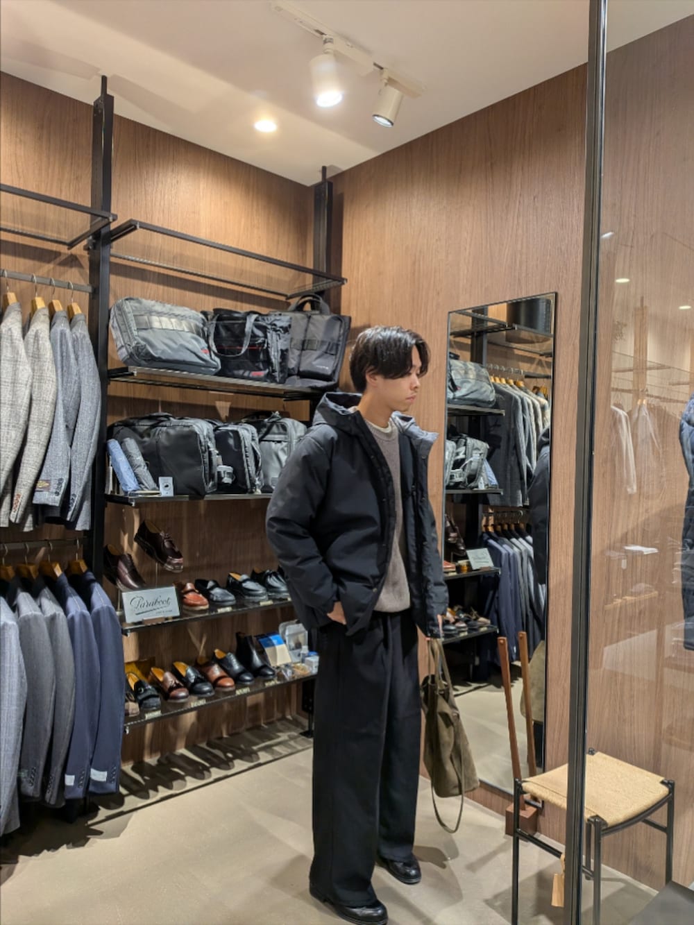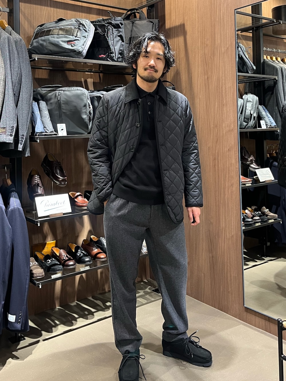 撥水機能を備えたウール混紡生地を使用。ラミネート加工により風を通さず、冬場でも暖かく快適に。