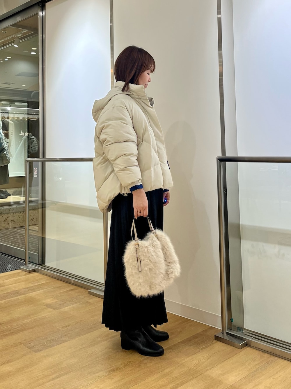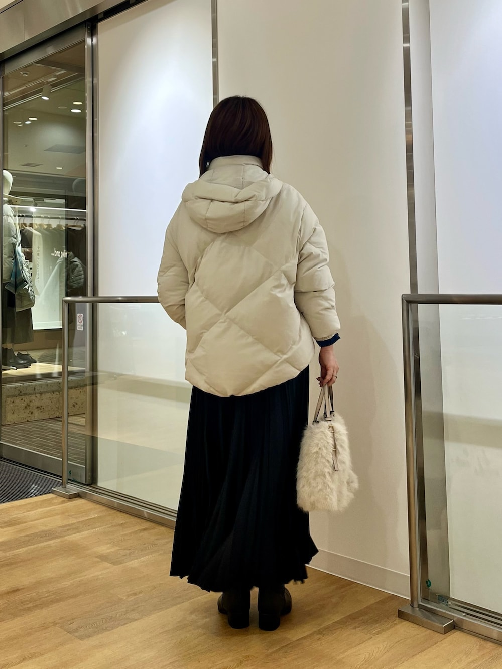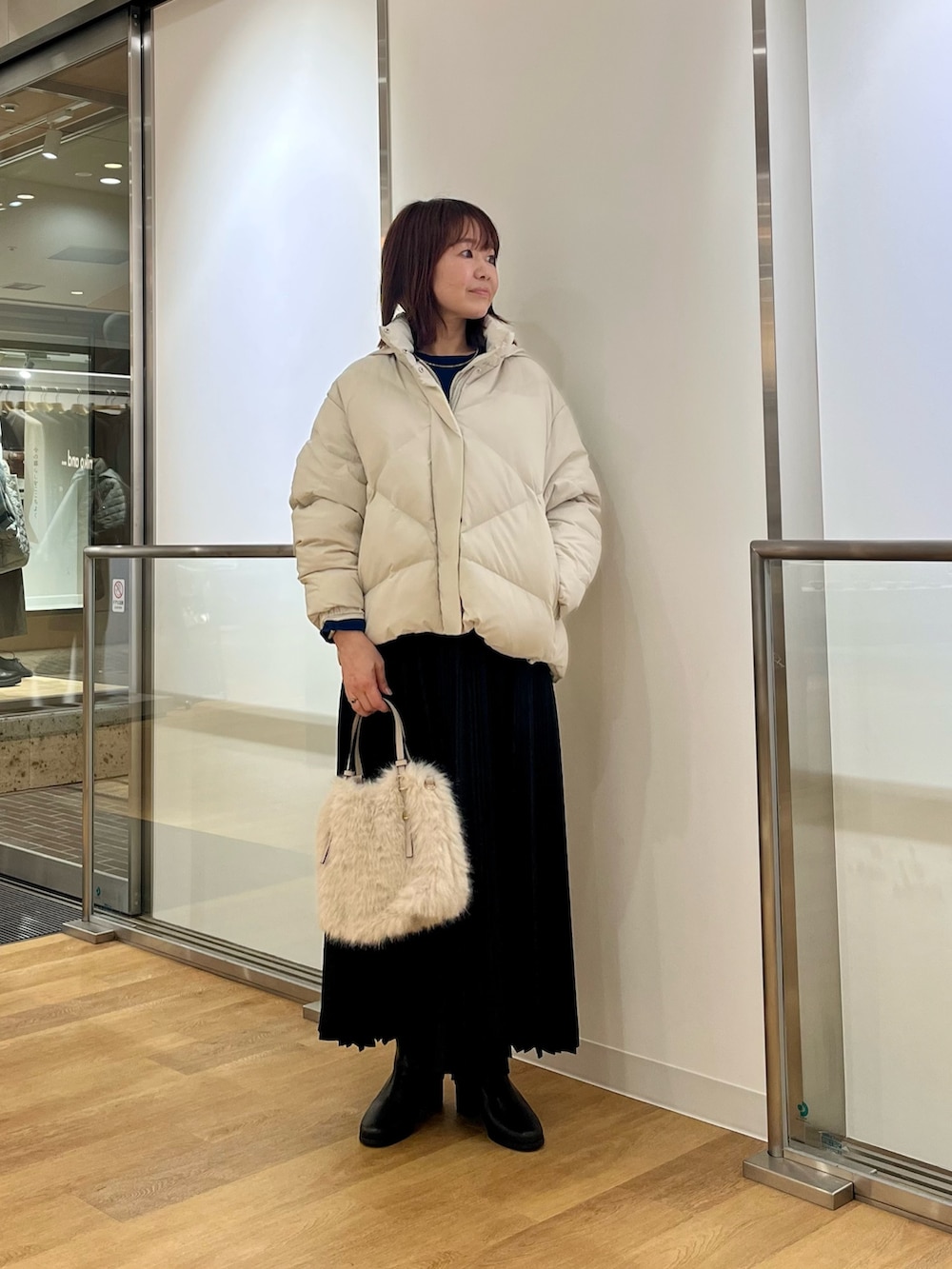 暗くなりがちな冬のコーディネートですが顔まわりに明るい色を持ってくるのがおすすめです✨