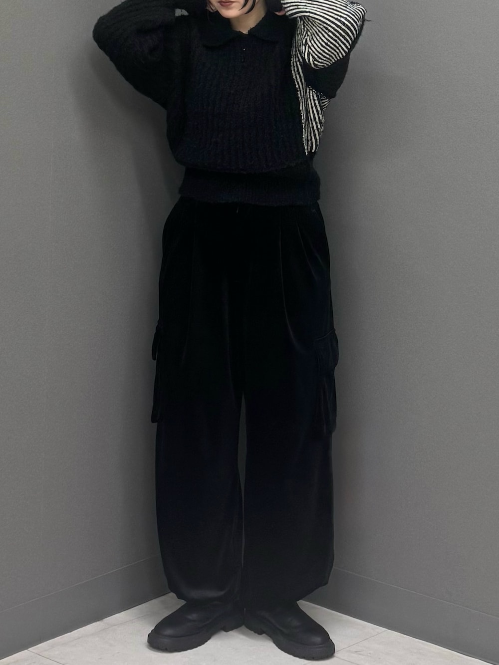 首元はポロ衿仕様になっているので、ボタンを開けて抜け感をプラス➕