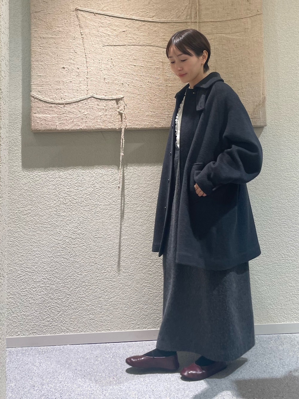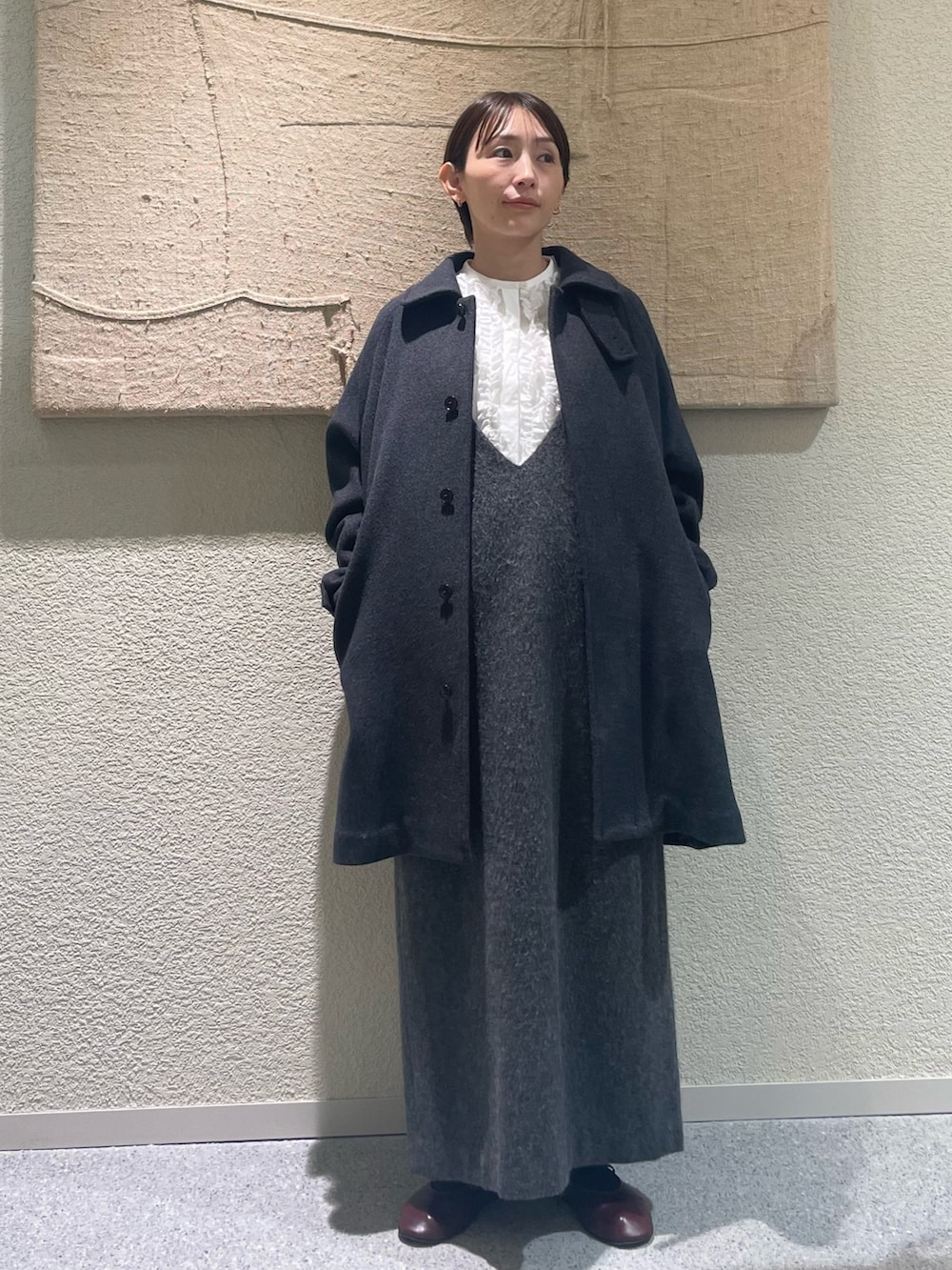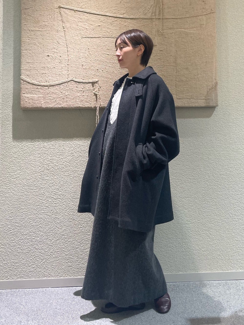 ウールバックタックショートコートのCHARCOALを合わせてグレーのグラデーションで合わせました🩶
