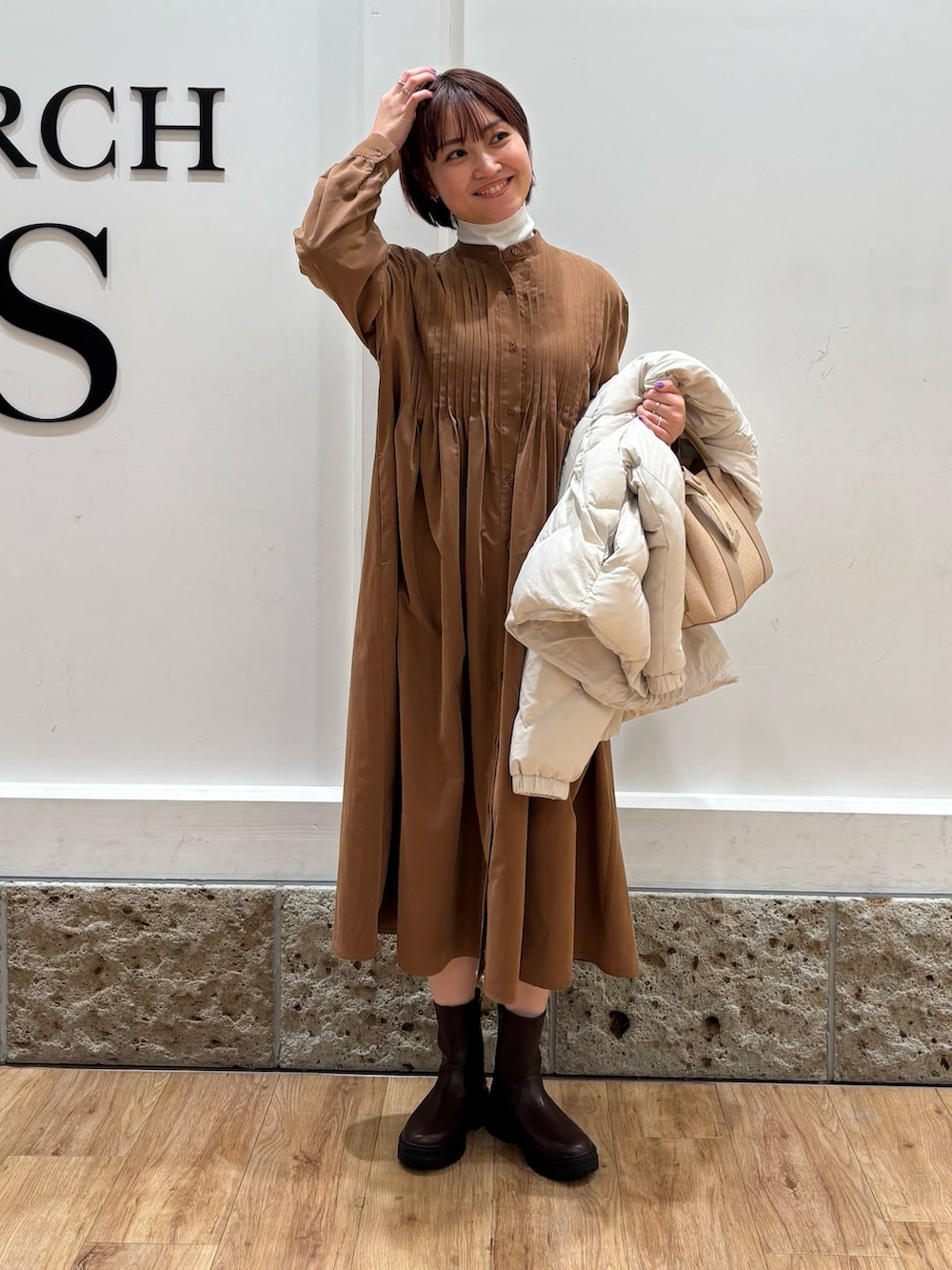 ワンピースはベロア生地に近いやわらかい質感です。ニットやスウェットに飽きてきたいま時期に着用したいアイテムです◎