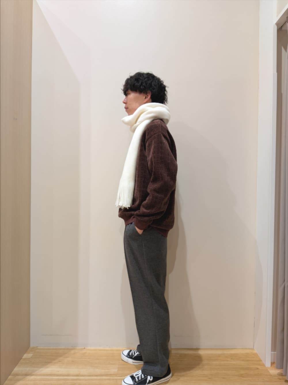 厚みのある生地で、スウェットのためニットのようなチクチクがなく、店頭でも人気です。