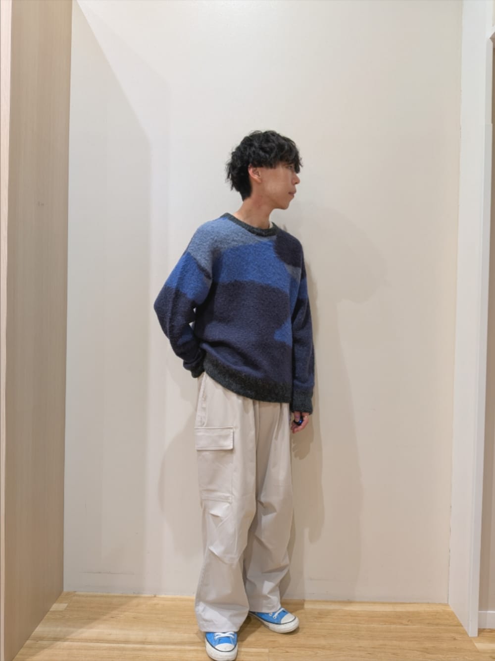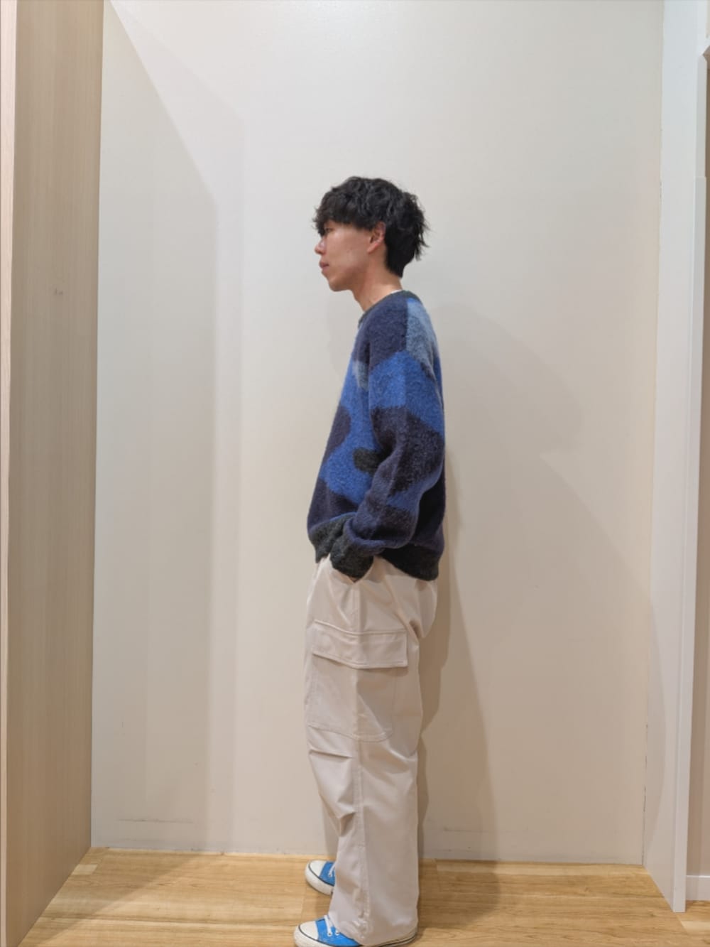 全体的にゆったり目のサイズ感でまとめてリラックスしたスタイルに。