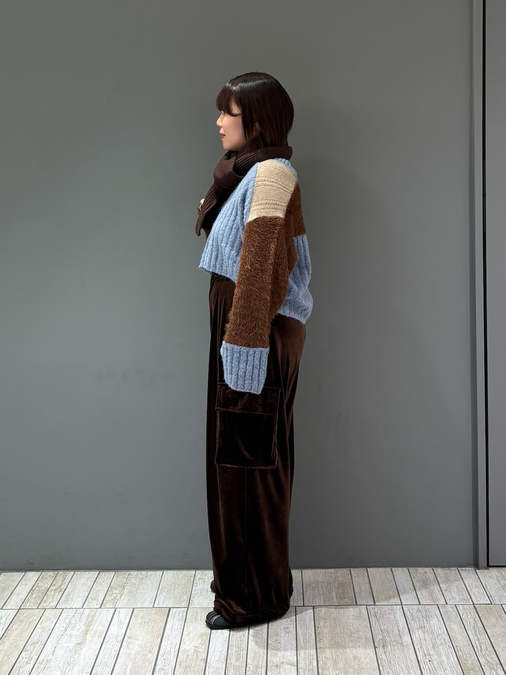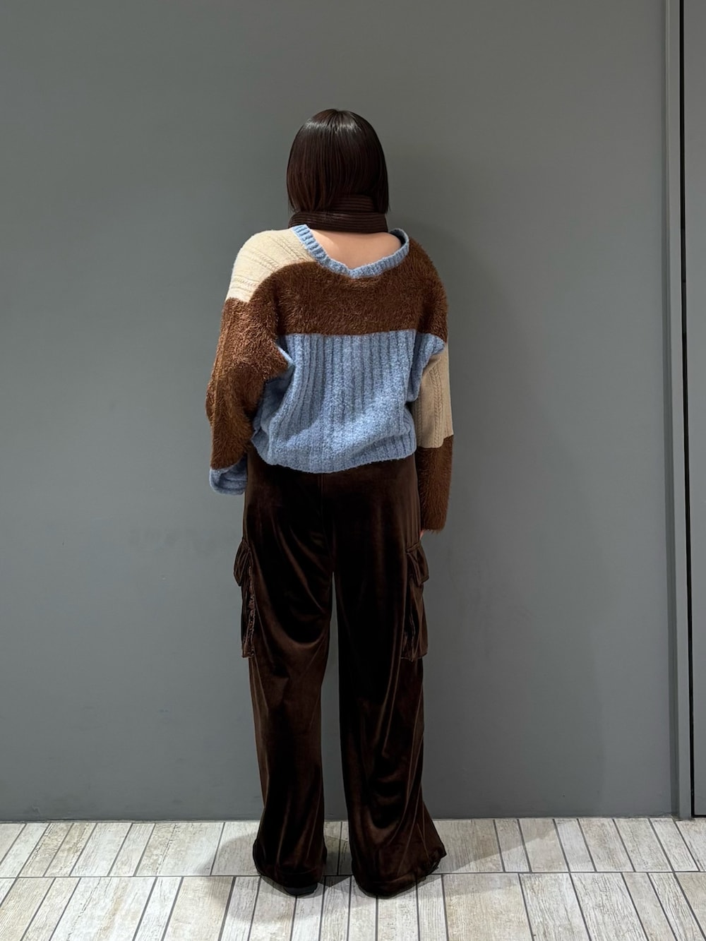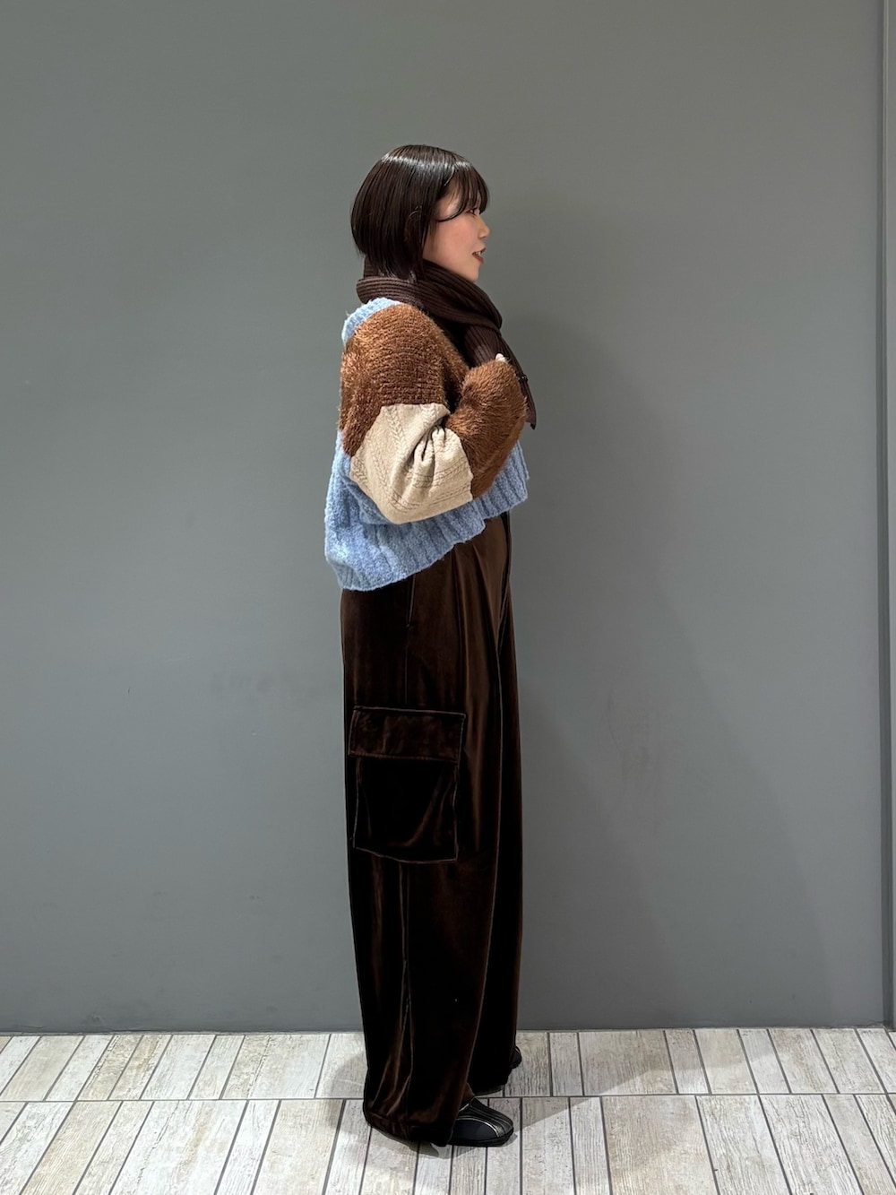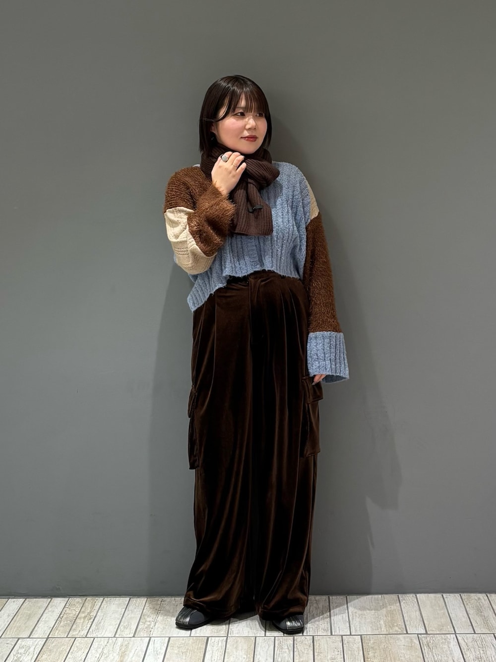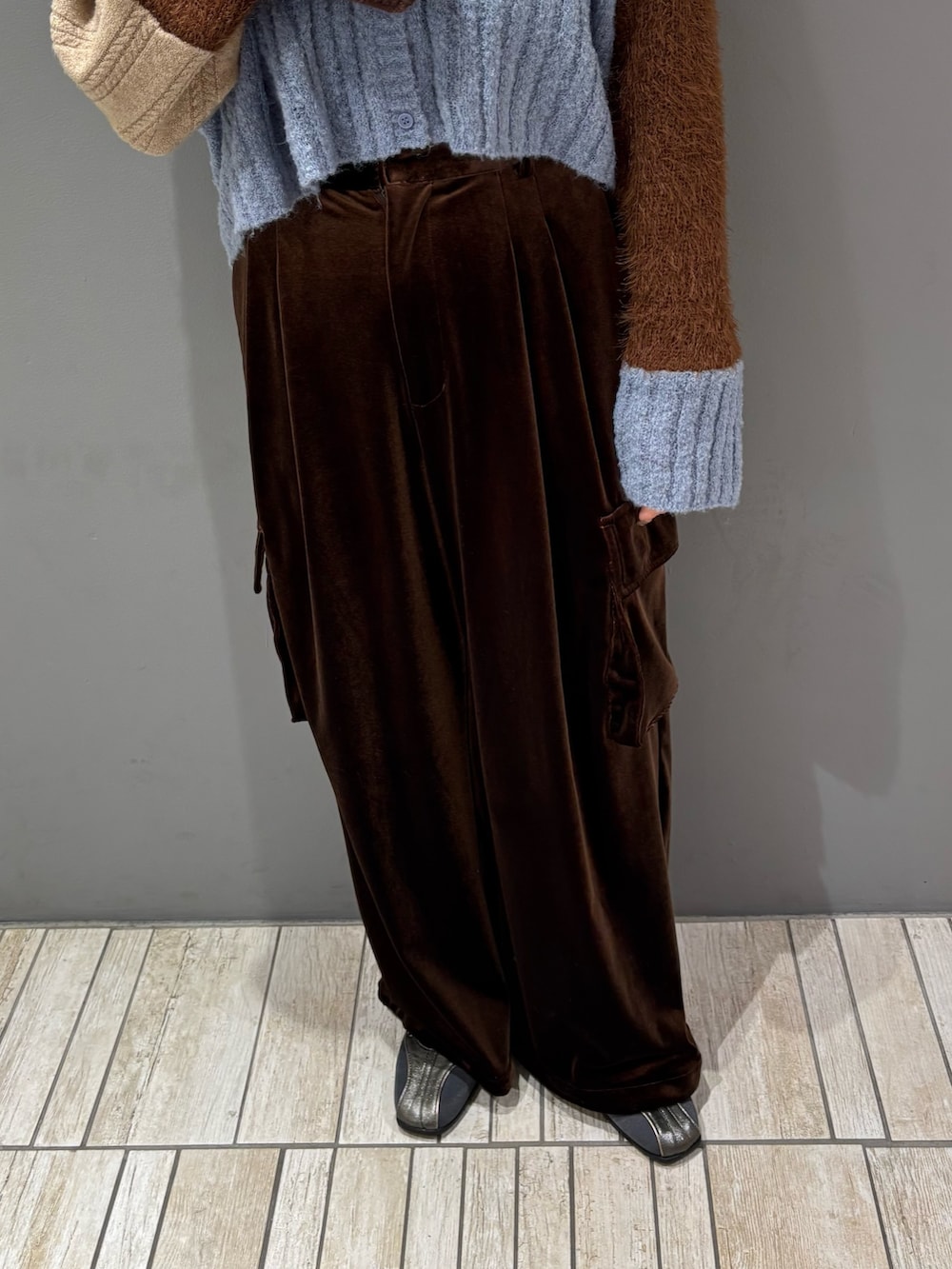 秋らしいベロア生地が大人っぽさと上品さを演出してくれ、カーゴデザインとちょうどバランス良く着ていただける1着に︎︎𓂃⟡.·
