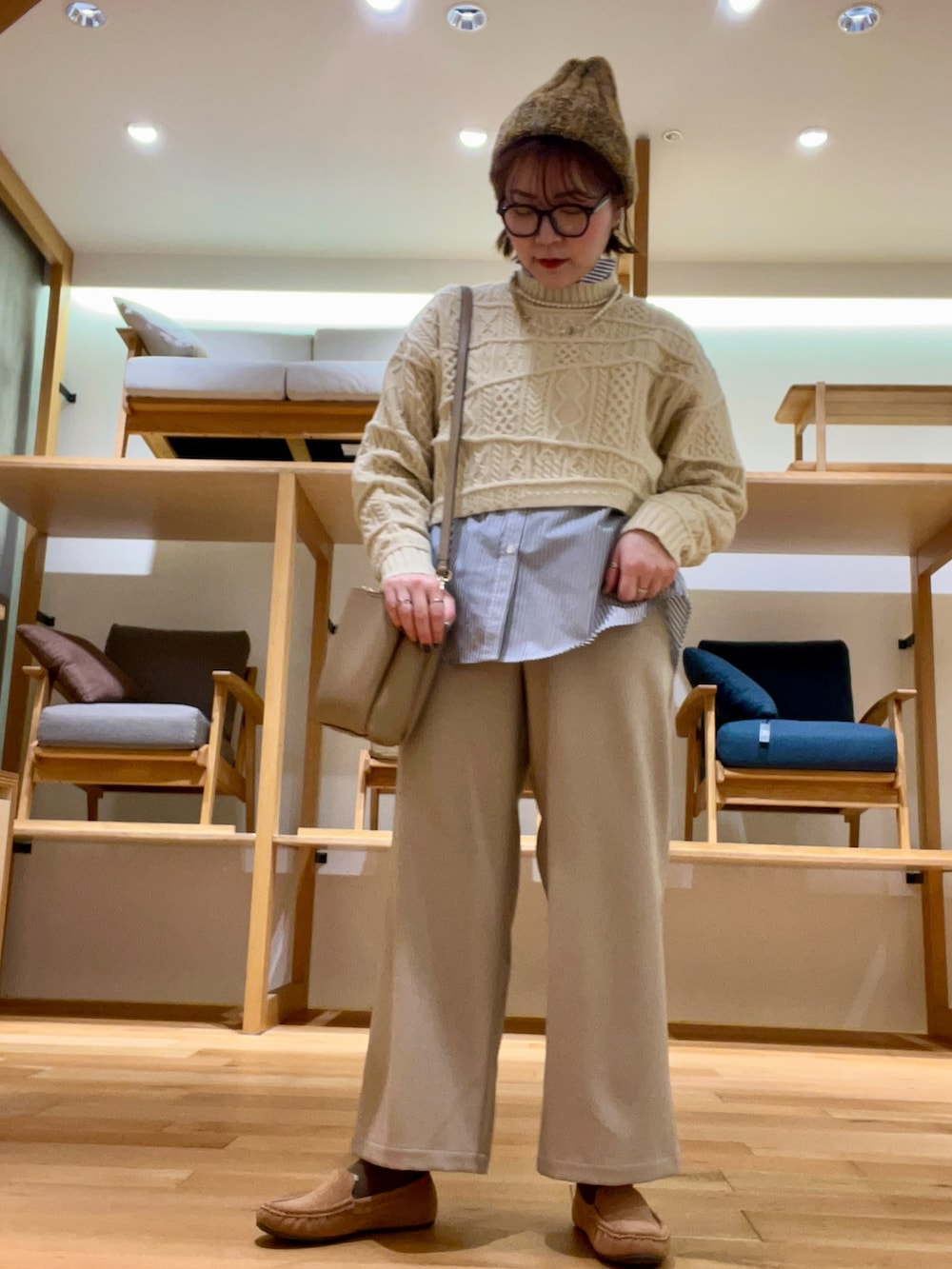 ニットにはワンピースを合わせたりチュニックシャツを合わせても可愛いです‼︎