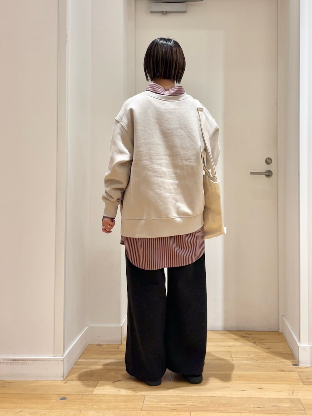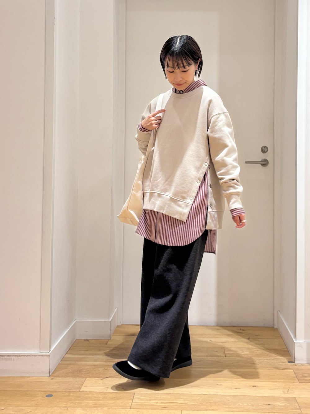 今回はストライプのシャツをインナーに合わせてポイントにしてみました♪