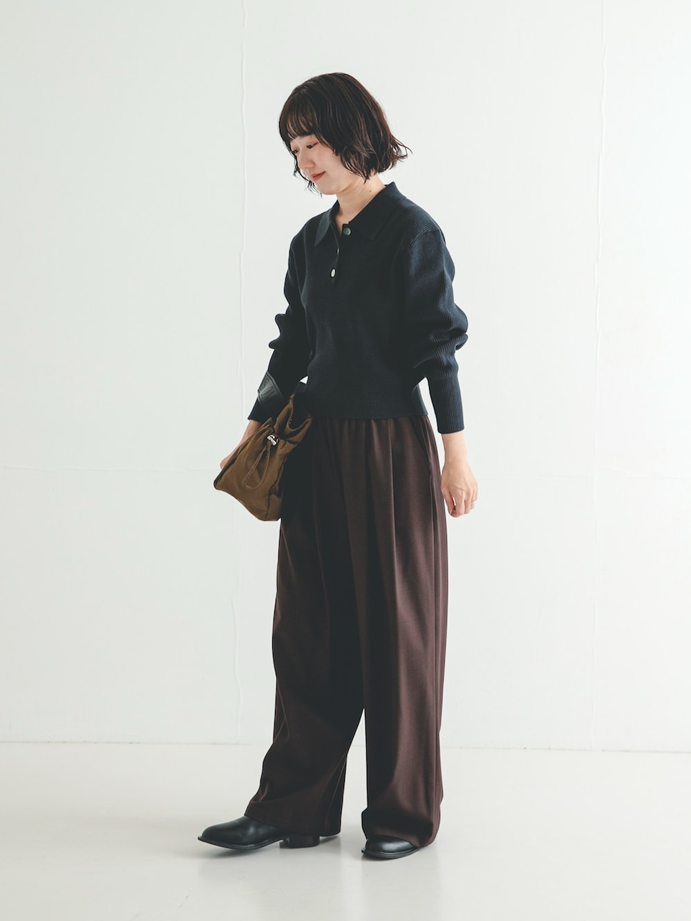 ウエストで自然に留まるコンパクトなサイズ感が今年らしいデザインで、ワイドボトムスとも相性抜群です。
