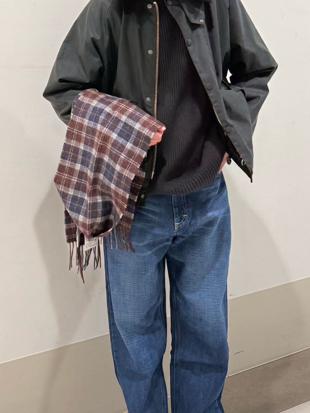 いつもご覧いただきありがとうございます!Barbourのトランスポートと、程よく色落ちしたインディゴデニムを合わせることで、武骨さとエレガントさを両立し、デニムを少し明るめのトーンにすることで、全体が重くなりすぎないよう調整しました!
