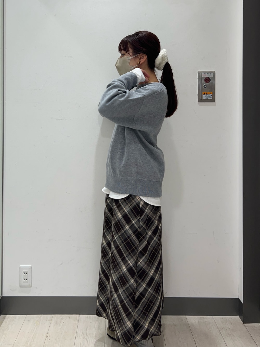 ニットにチェックスカートを合わせたコーデをご紹介いたします♡
