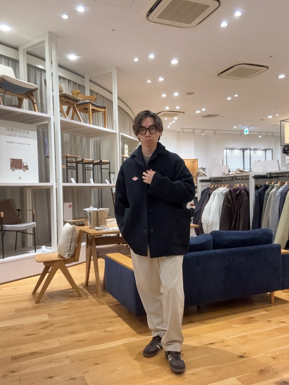 今回のようにパンツを対照的にするも良し、ネイビー寄りの色で統一するも良しと、使い勝手の良い1枚となっています。