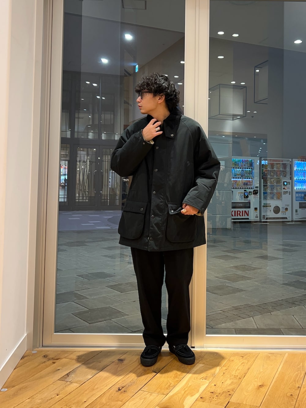 冬でも着用できるお洒落アイテム!アウターを主役にしたかったのでインナーとボトムスはシンプルに黒に。