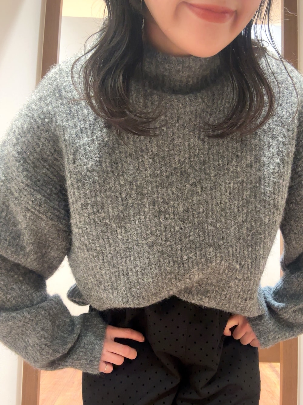 首元をやさしく包み込んでくれるボトルネックはお顔まわりをスッキリみせてくれます🩶