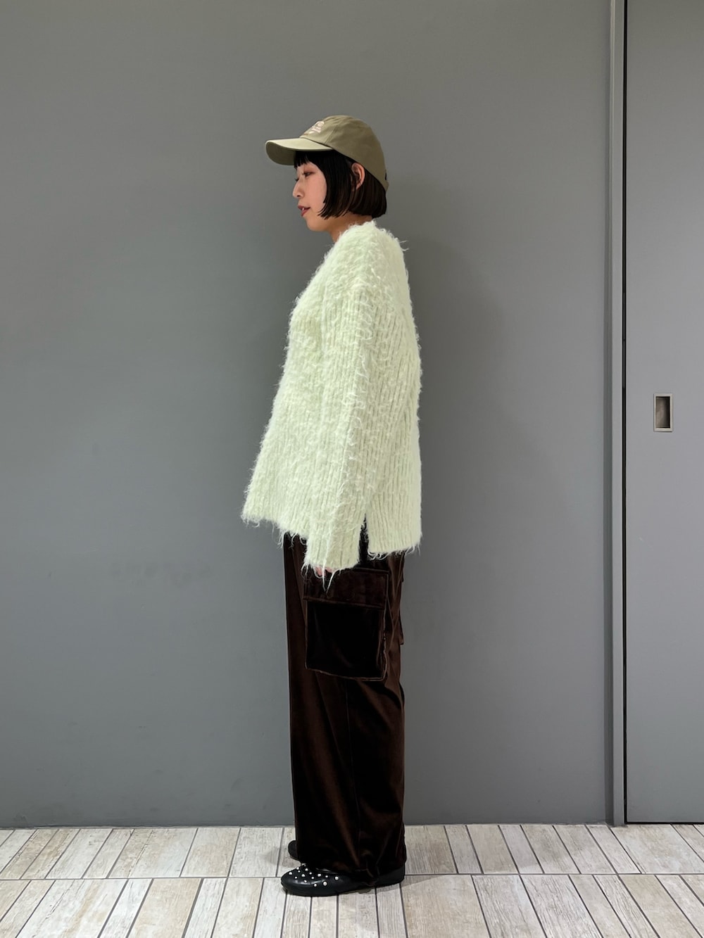 トップスのニットはかなりのオーバーサイズ!!
