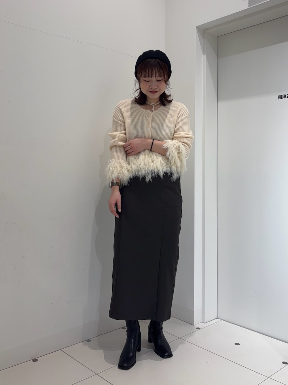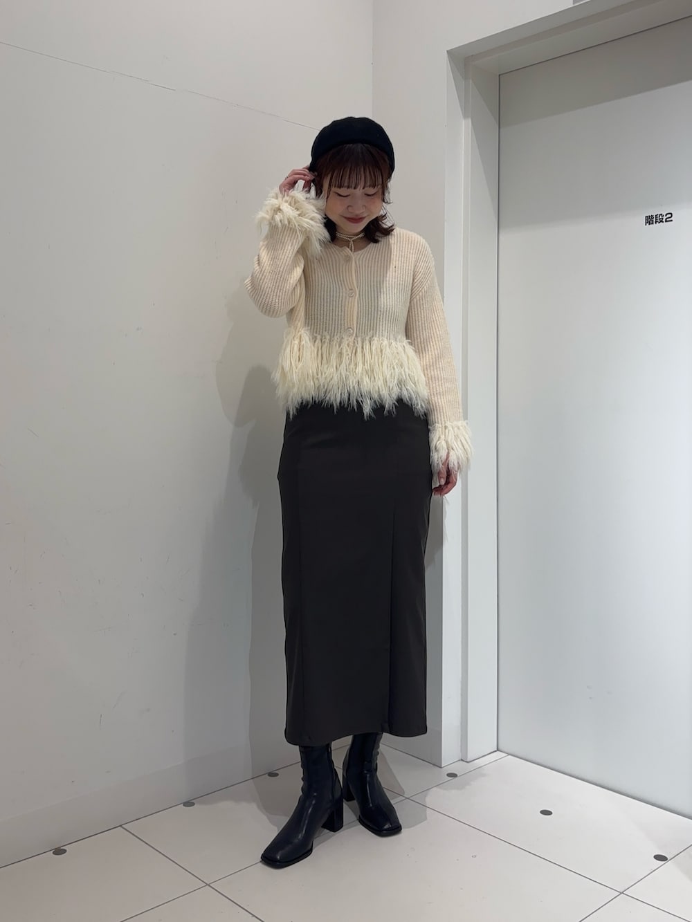 フリンジやベレー帽で甘さが際立つけど、タイトスカートでちょっぴりレディ要素も➕