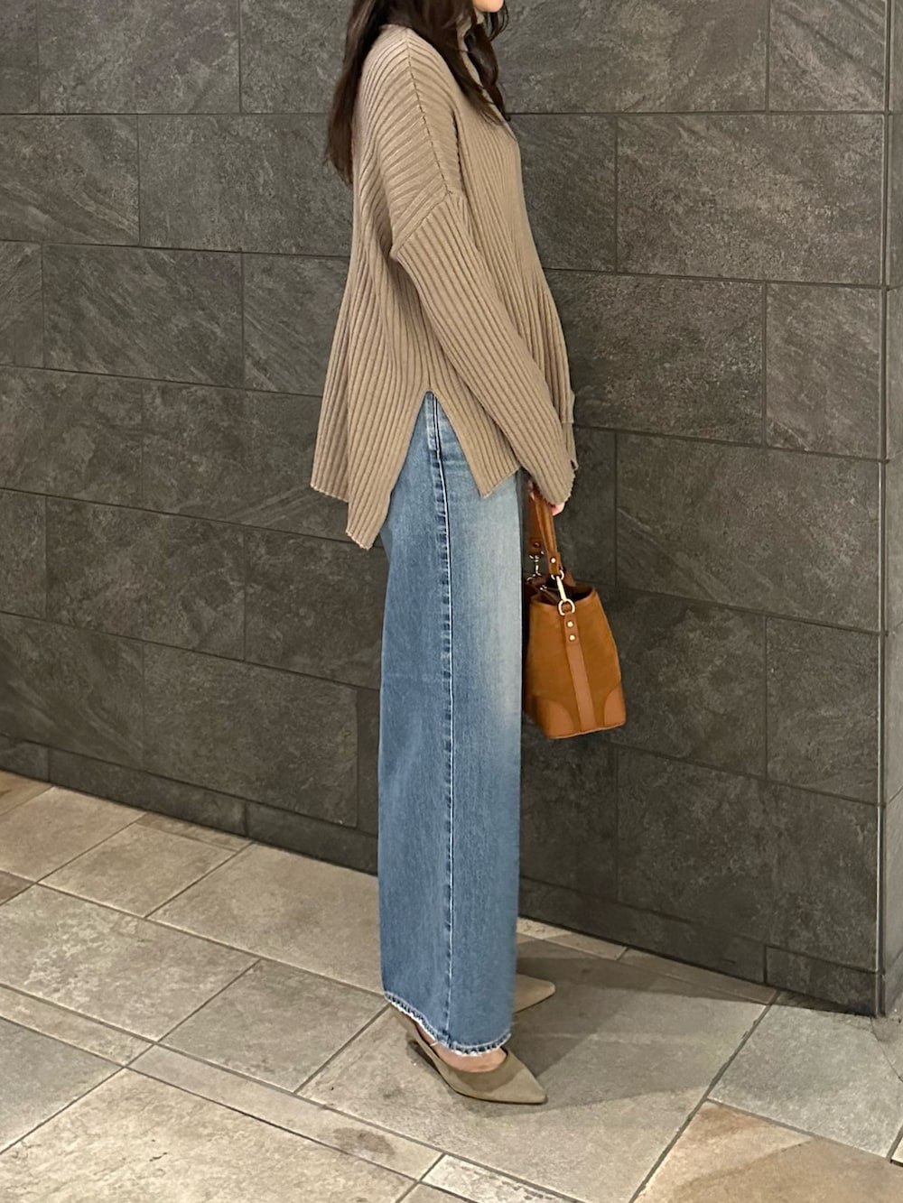 シンプルなデザインながらも前後さのある着丈に深めのスリットがこなれた印象に◎
