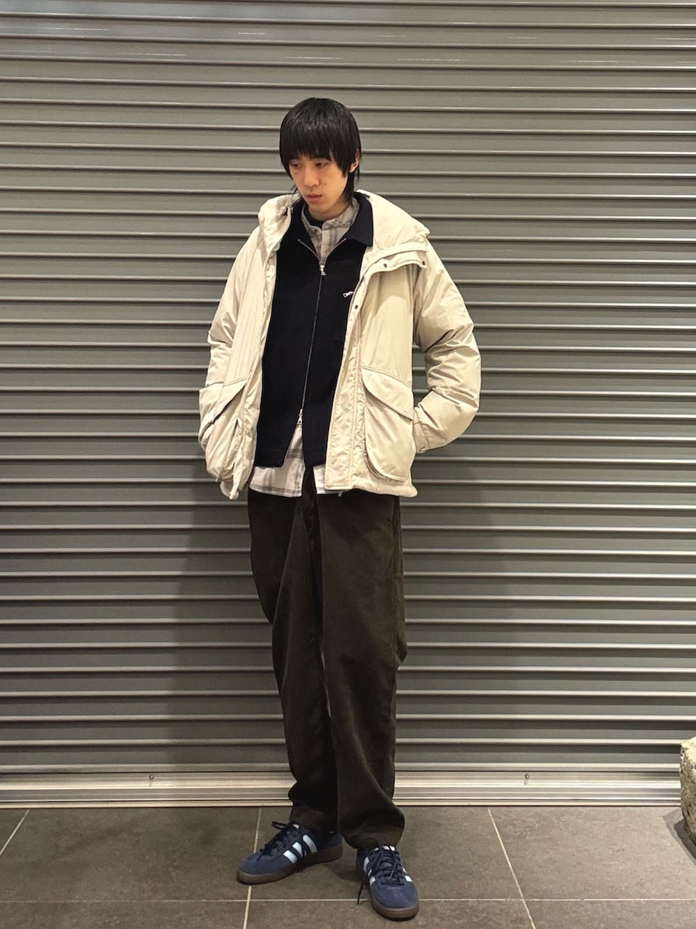 重いトーンになりがちな冬のスタイリングにおすすめなアイボリーのアウター。中にジャケットも着込めるので色々なスタイリングが楽しめます。