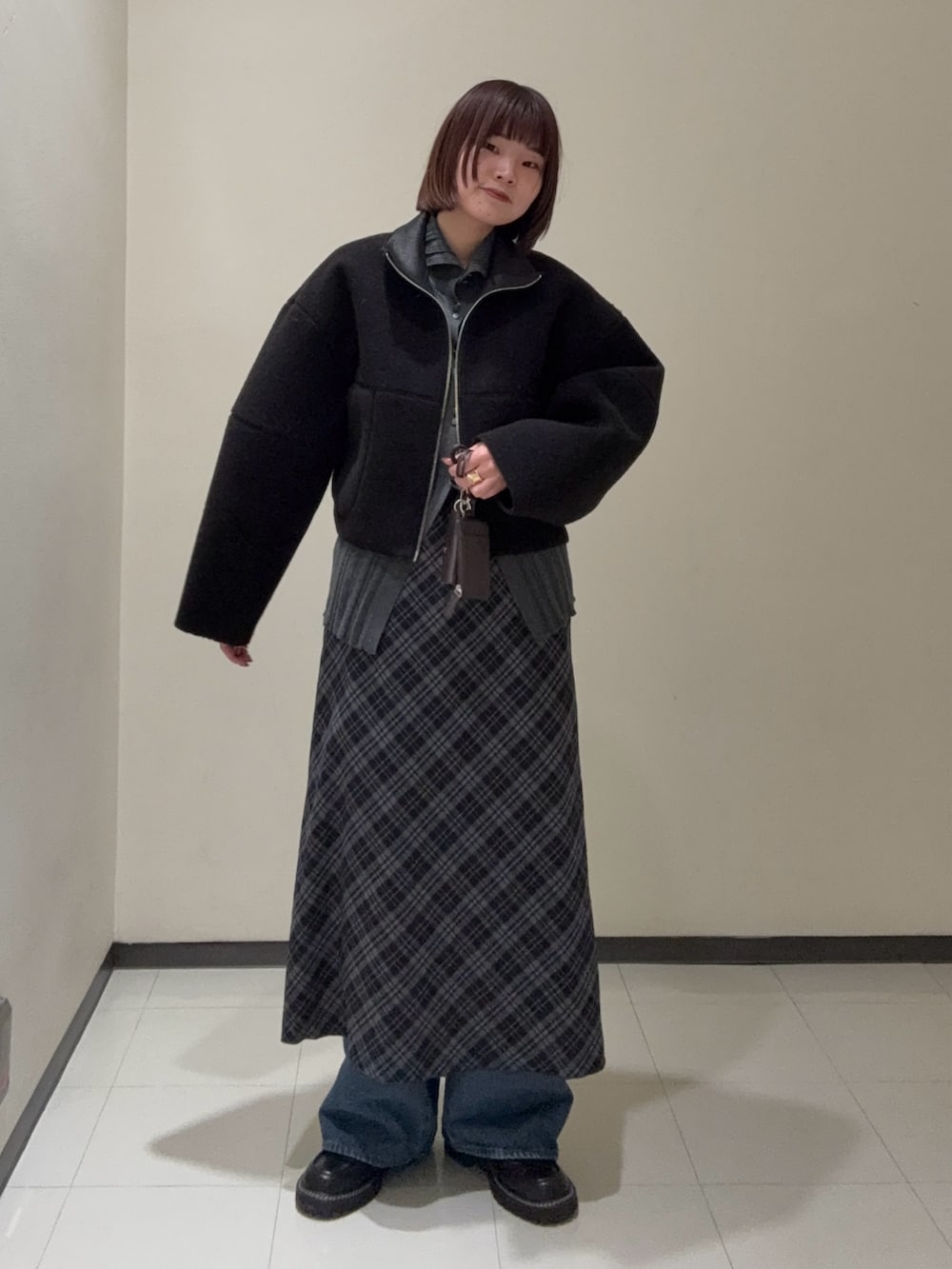 グレートーンで全体を合わせたレイヤードコーデを組んでみました✨
