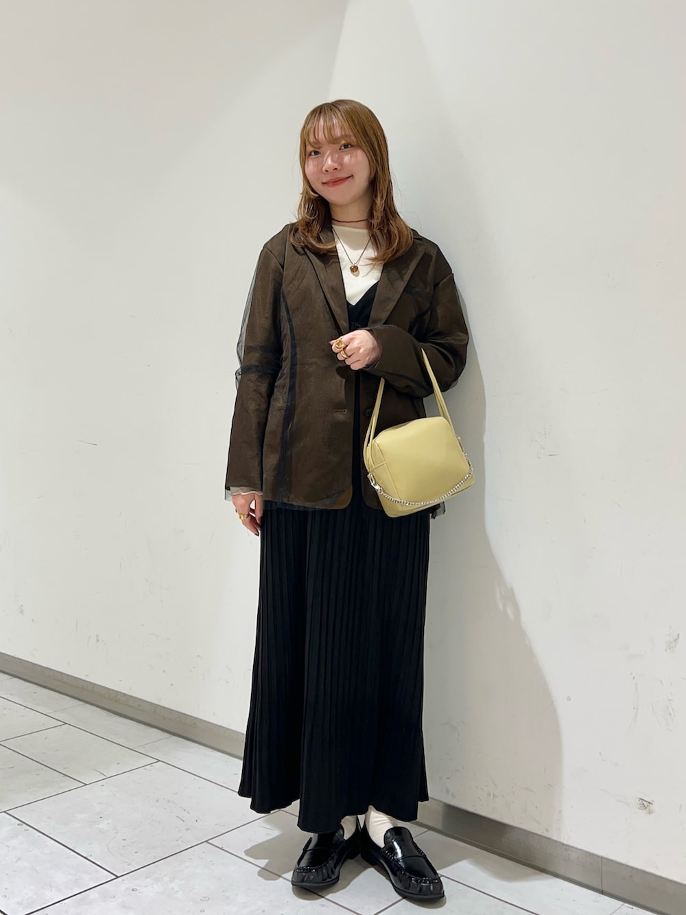 チュールジャケットとプリーツのワンピースでキレイめに着てみました♪