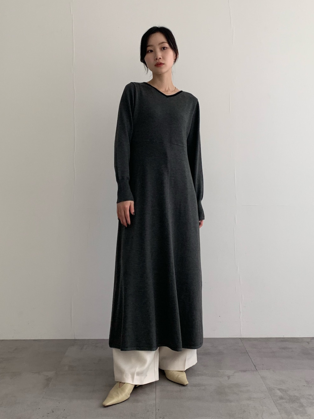 ウォシャブルフレアシルエットニットワンピース