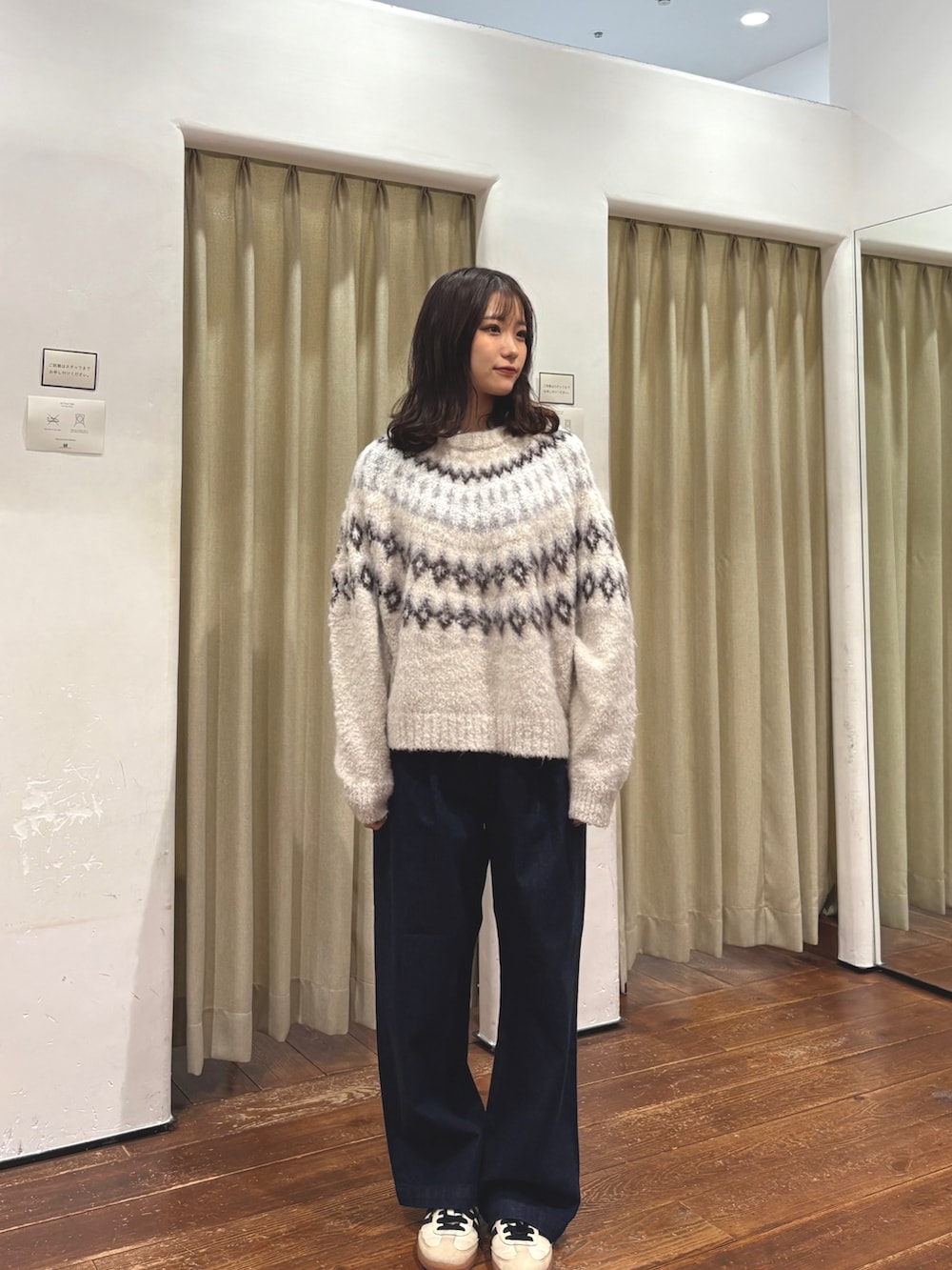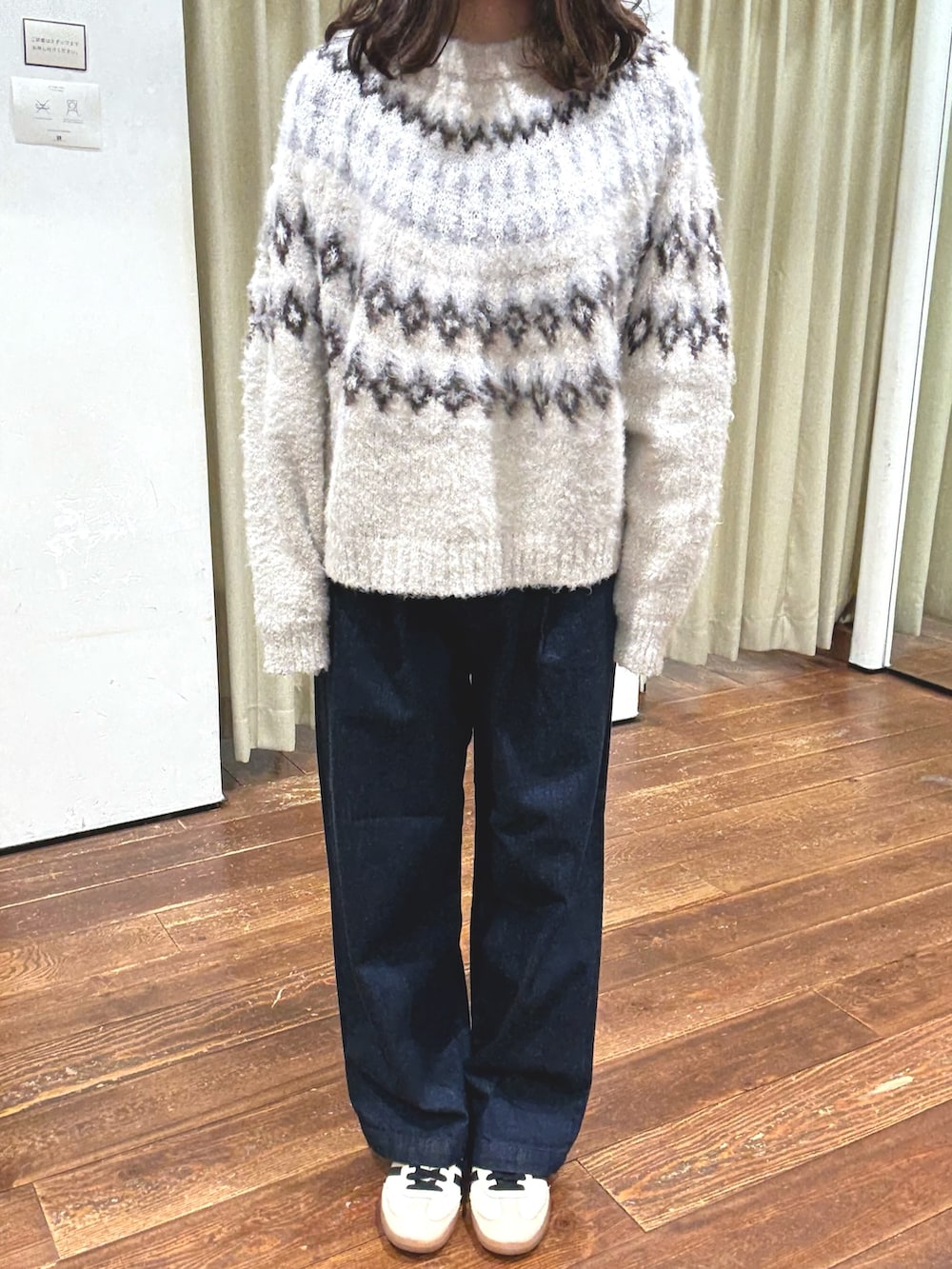 トップスはノルディック柄が可愛く、生地感も柔らかくて着やすいニットです。