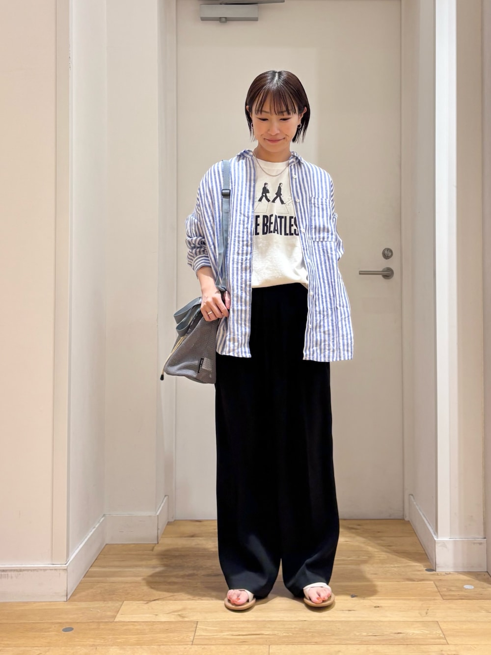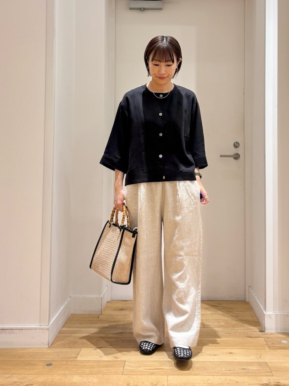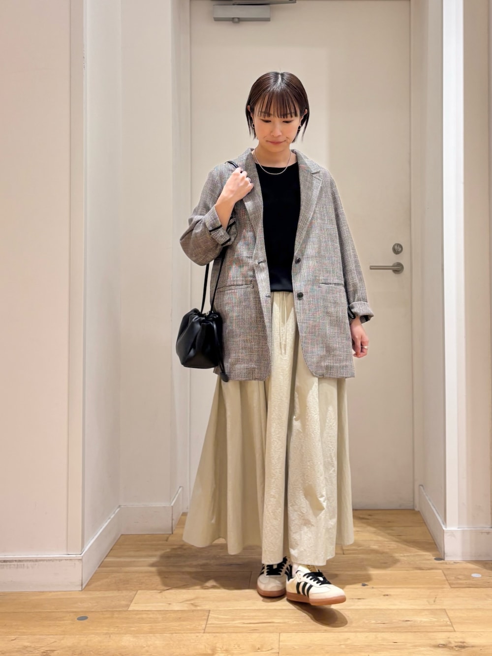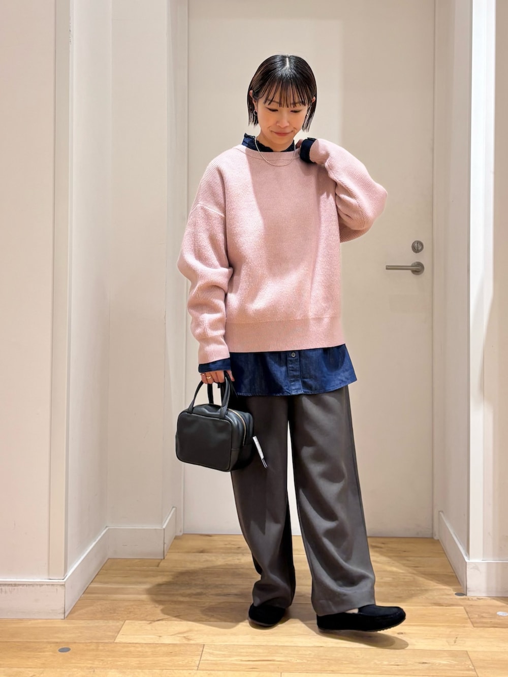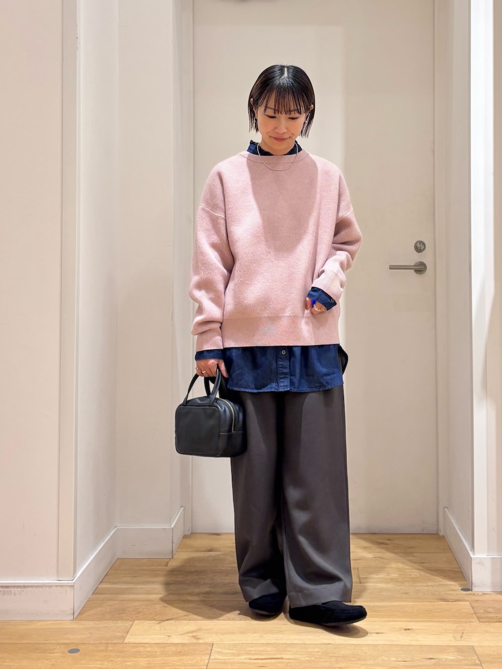 ゆとりのあるサイズ感なので、シャツやブラウス合わせも楽ちんですよ◎