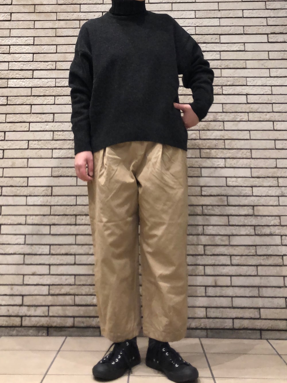 パンツはかぐれ定番のコットンクロップドパンツです。ほんのりまるみのあるシルエットとすっきりな丈感が、トップスを選ばずにデイリーに活躍します!