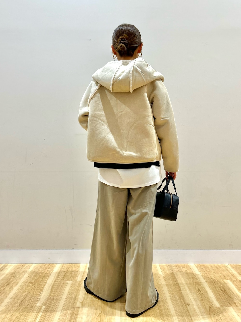 ロンTと重ねて奥行きあるレイヤードコーデに。
