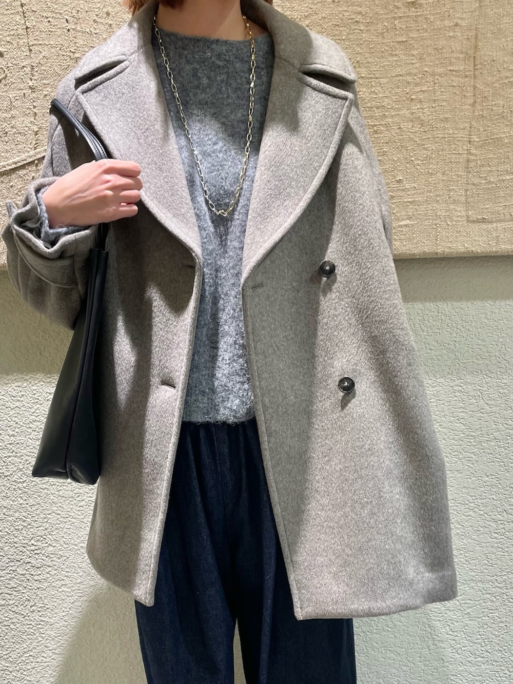 Pコートでカジュアルになり過ぎないように合わせました!
