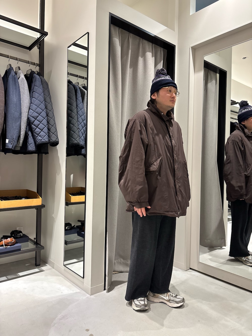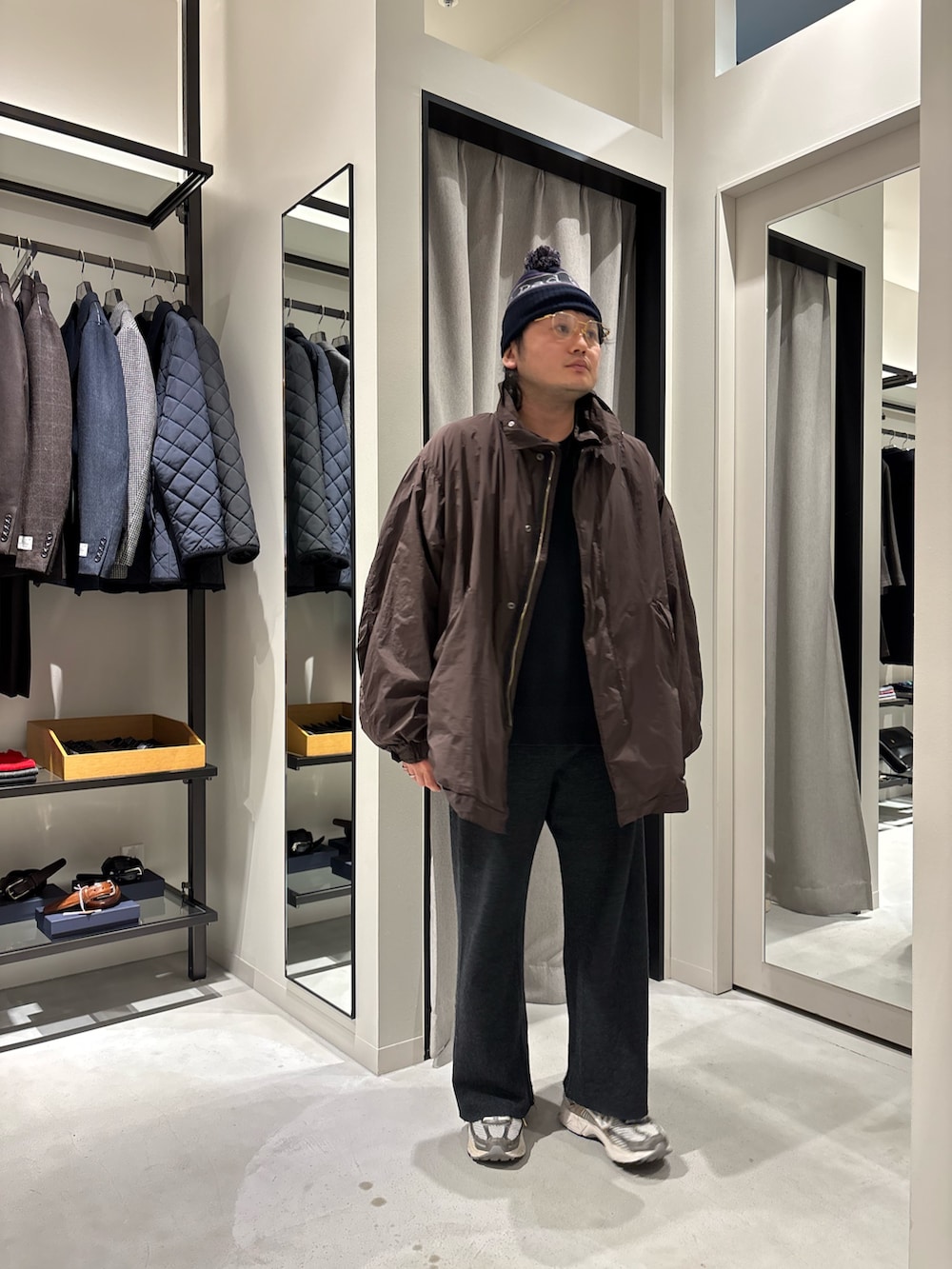 今回はATON秋冬定番のショートモッズコートを着用しました。