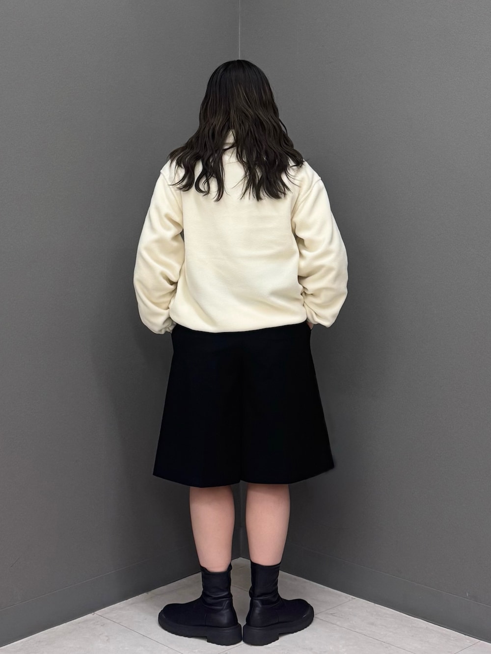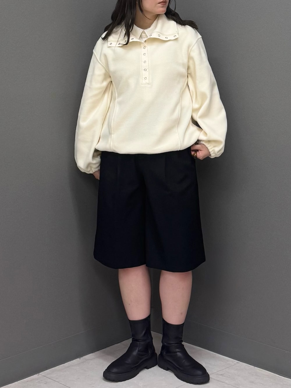 襟元を折り返して抜け感をプラス➕