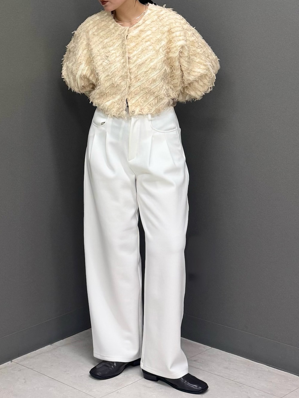 コンパクトな丈感はどんなボトムにも合わせやすく、前後2wayで着回せるのも嬉しいポイント☝🏿